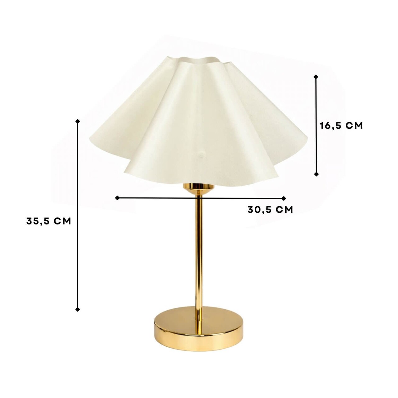 Lampa de masaCapac PVCDimensiunea capacului: Ø30,5 h:16,5 cmInaltime totala: 35,5 cmLungimea cablului: 150 cmButon de pornire/oprire pe cabluTip soclu: 1 x E 27 Max 40 WBecul nu este inclus220-240 VGrad de protectie: IP20