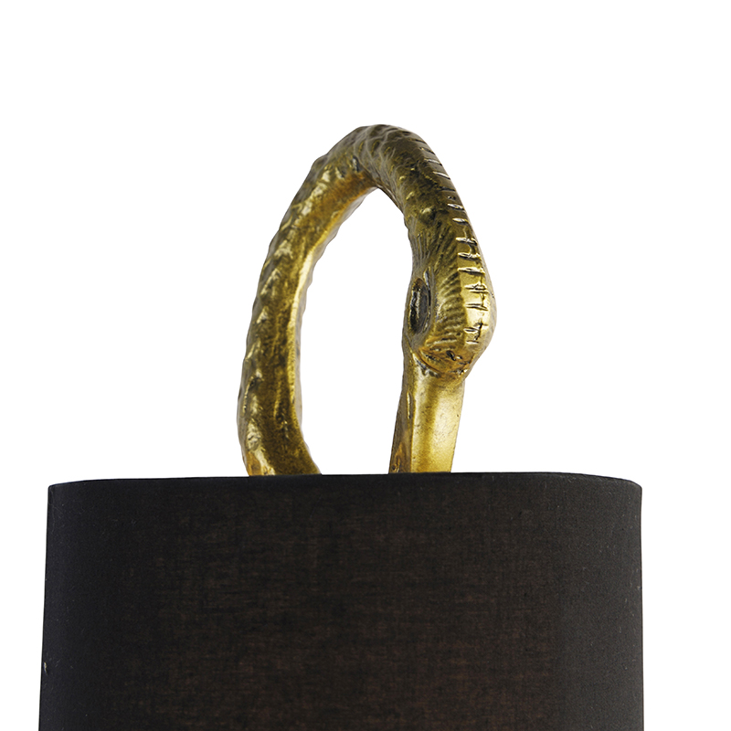 Lampă de podea vintage din alamă cu abajur din material textil negru - Animal Crane