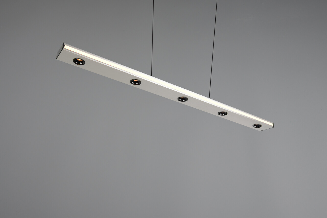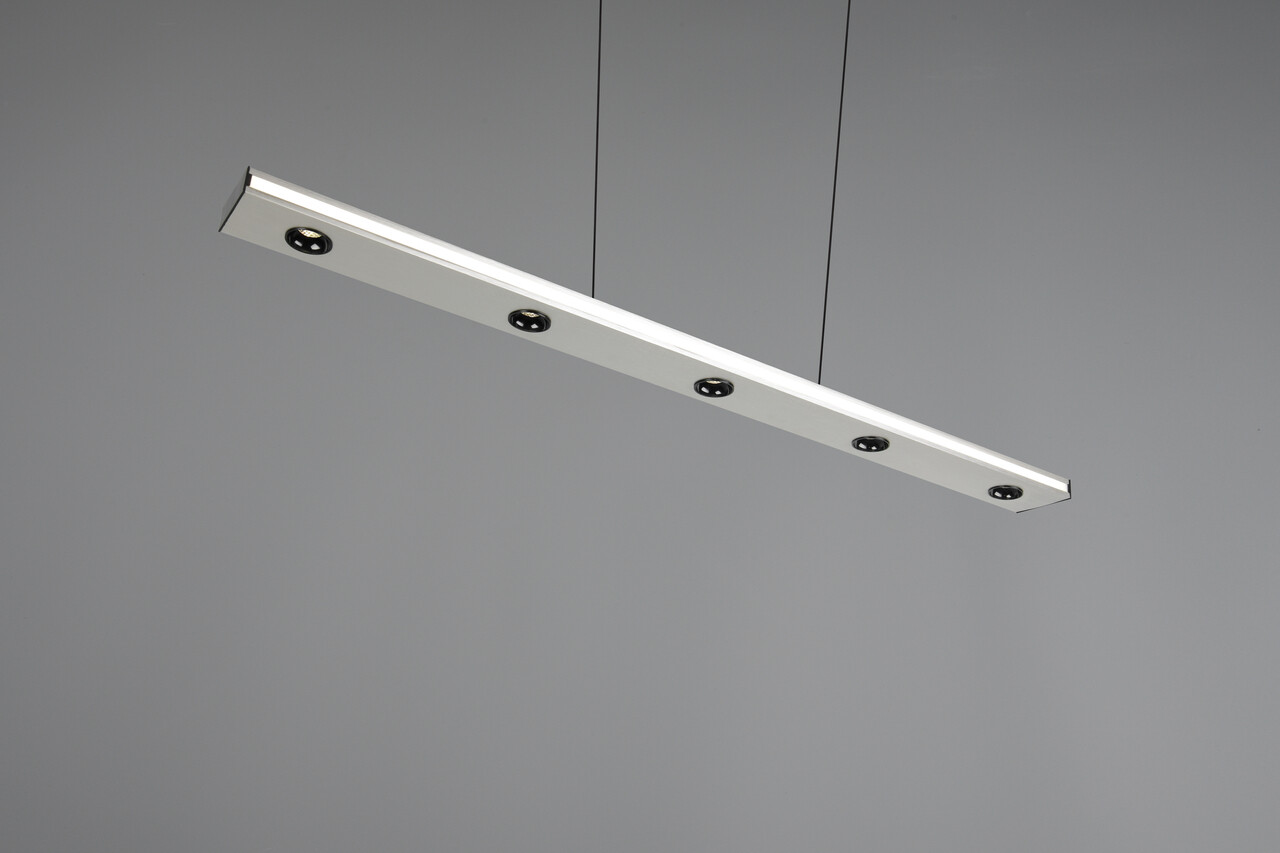 Lustra Graham, cu dimensiuni de 109x9x150 cm, îmbină stilul modern cu funcționalitatea. Aceasta dispune de multiple surse de lumină care pot fi controlate individual, oferind o iluminare versatilă în sus și în jos. Înălțimea lustrei este reglabilă, iar temperatura culorii luminii (2300K, 3000K, 4000K) poate fi ajustată în trepte. Intensitatea luminoasă se poate modifica continuu prin variatorul de lumină integrat, iar ultima setare va fi memorată pentru utilizări viitoare. Brandul TRIO garantează calitate și inovație în iluminat, cu o durată de viață de 25.000 de ore.