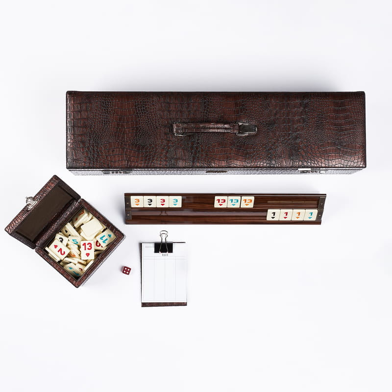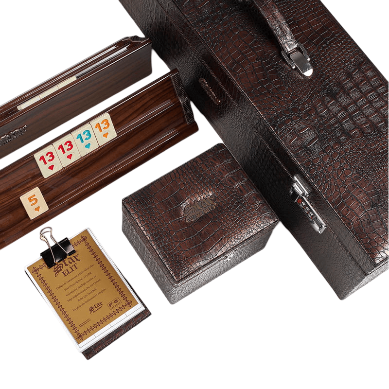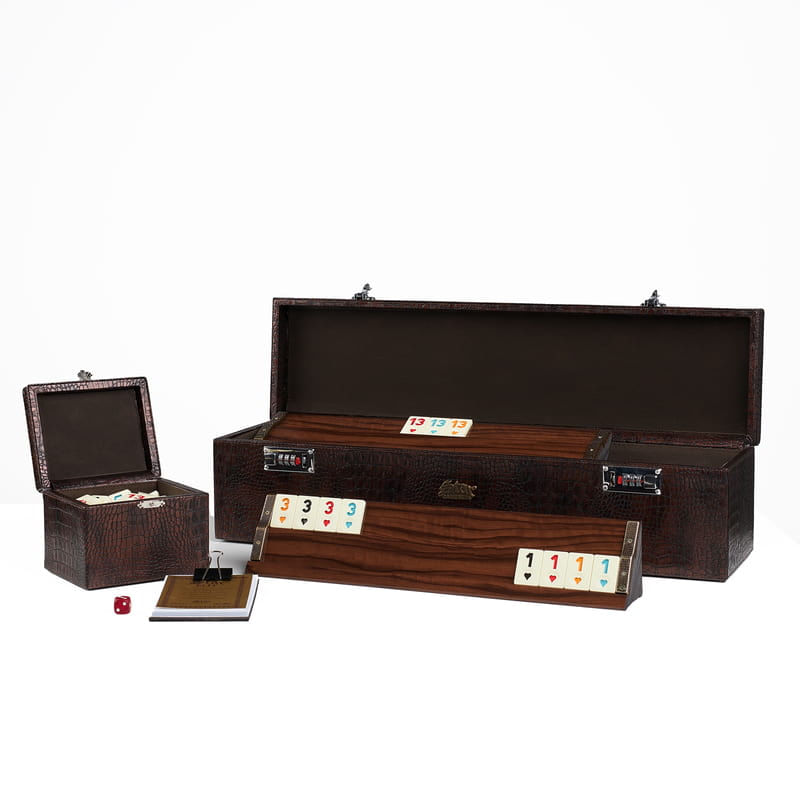 Joc de Remi / Rummy Premium realizat 100% manual din Lemn Masiv cu Piese Premium si Geanta de Depozitare din Piele