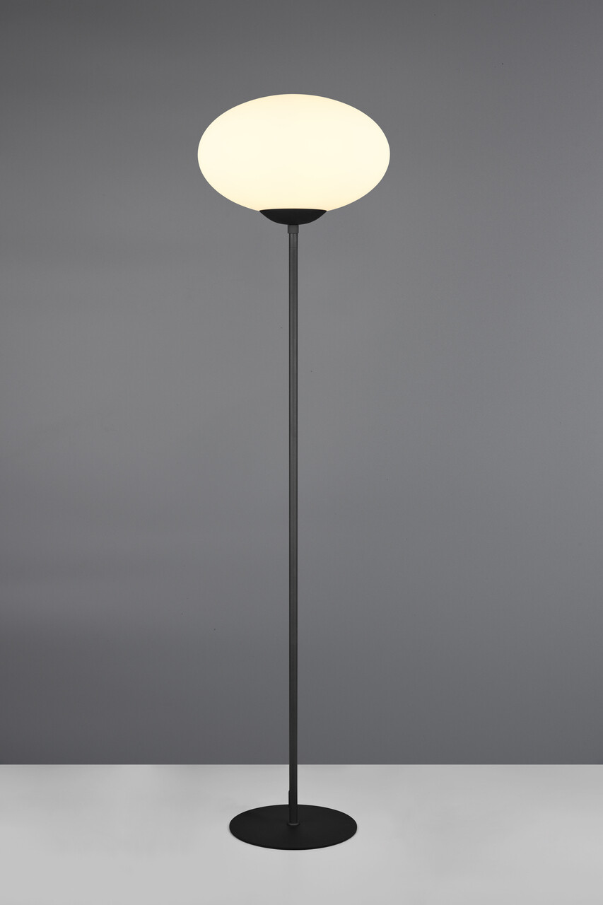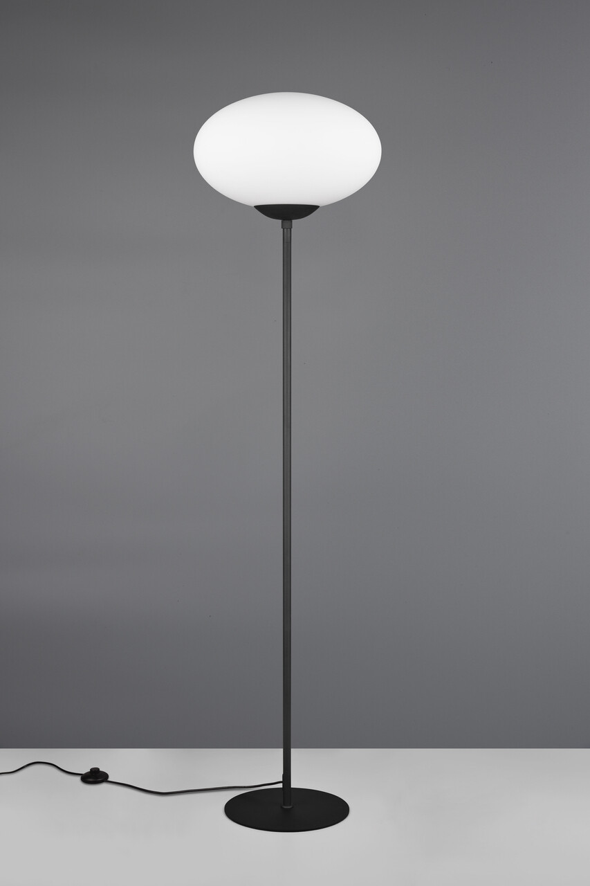 Lampadarul Fomento de la TRIO, cu dimensiuni de 40x150 cm, aduce un accent de eleganță în orice living sau colț de relaxare. Capul său elipsoidal din sticlă opal distribuie o lumină plăcută și caldă, creând o ambianță rafinată. Designul modern, cu finisaj metalic negru mat și alb, se integrează perfect în decorul contemporan. Este recomandat să folosiți un bec LED pentru o iluminare eficientă și de lungă durată. Cu un grad de protecție IP20 și o putere de 15W, acest lampadar este alegerea ideală pentru un iluminat versatil și de calitate.