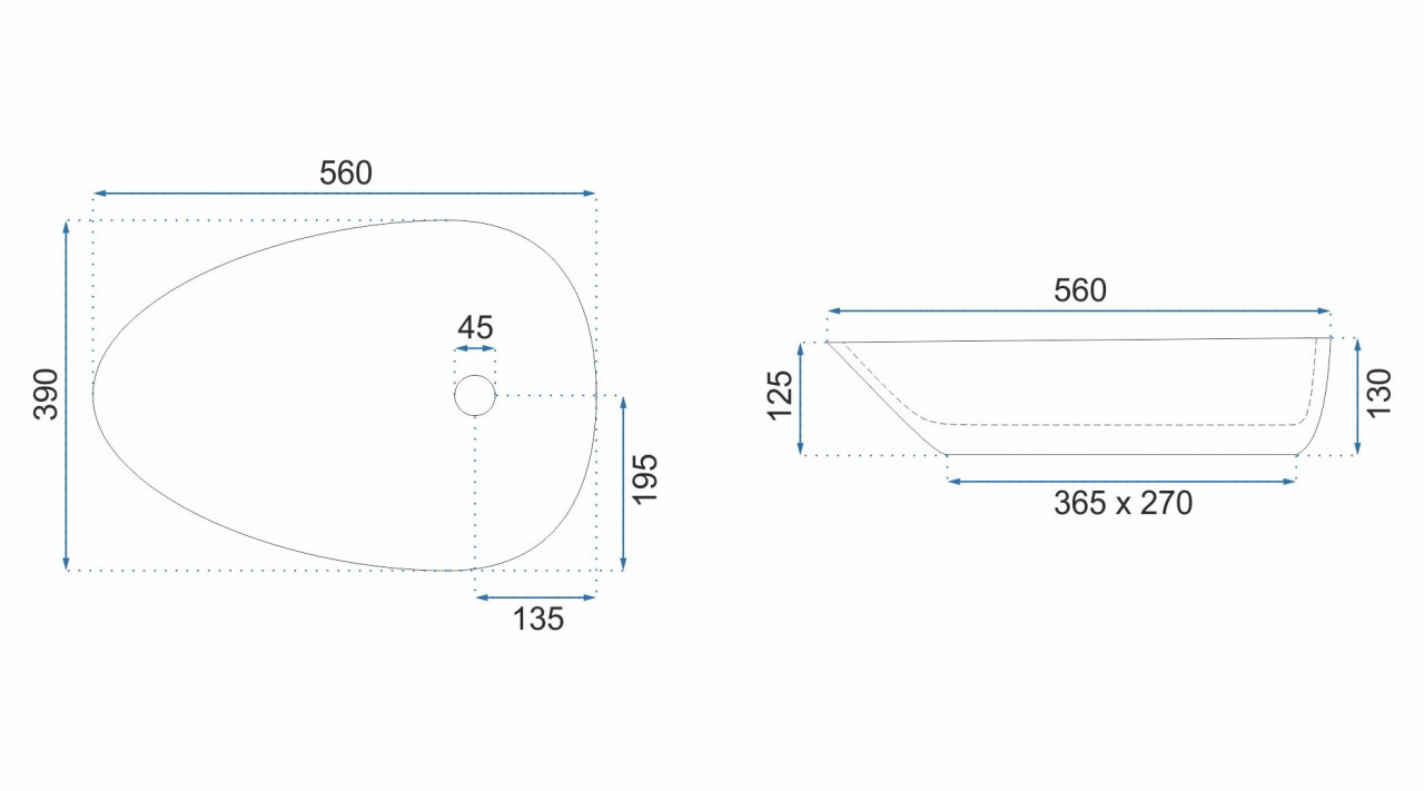 Lavoarul asimetric pe blat Rea Greta de 56 cm este caracterizat de forma sa longitudinala si de linia subtire a marginilor. Acoperit cu glazura alba, acest lavoar straluceste si iese in evidenta in baia ta. Cu o adancime de 100 mm si o inaltime de 130 mm, acest lavoar se monteaza pe blat si se potriveste perfect in amenajari de baie cu design Slim. Cu o latime de 390 mm si o lungime de 560 mm, aceasta chiuveta este fabricata din ceramica sanitara de inalta calitate.