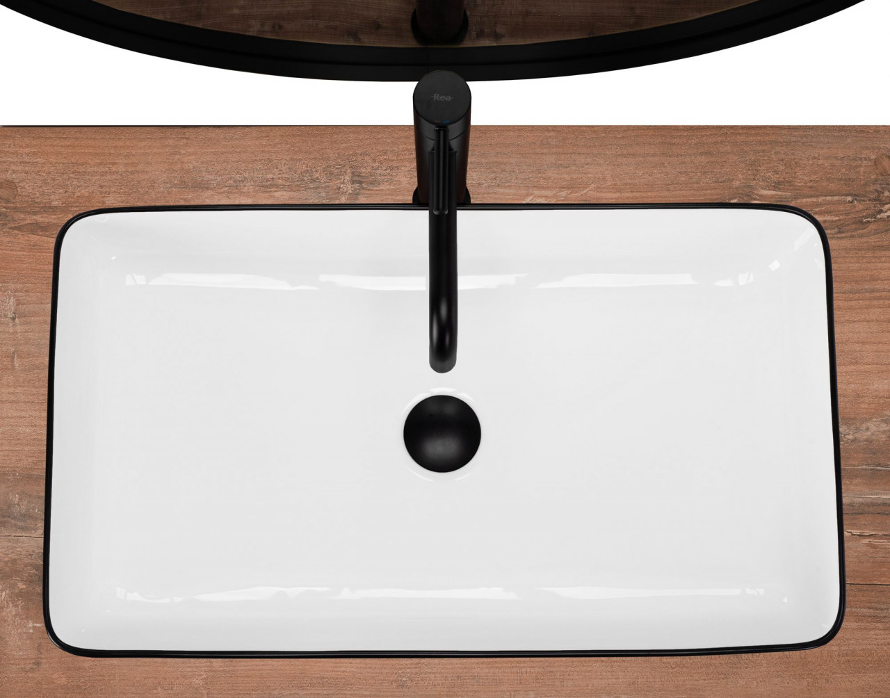 Lavoar pe blat Rea Denis dreptunghiular finisaj alb - negru 62 cm