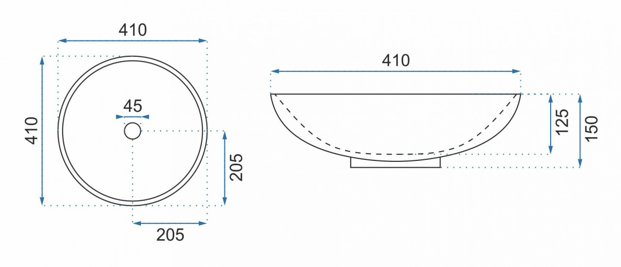 Lavoar pe blat Rea Fiori rotund finisaj alb - albastru lucios 41 cm