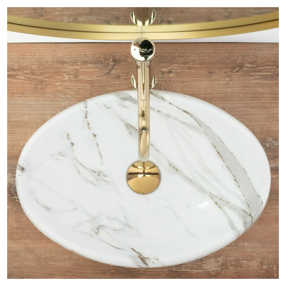 Lavoar pe blat Rea Linda Lava alb-marmura 48 cm