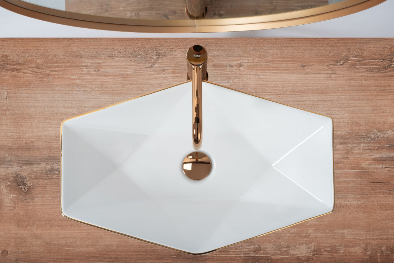 Lavoar pe blat Rea Vegas margini rose gold 57 cm