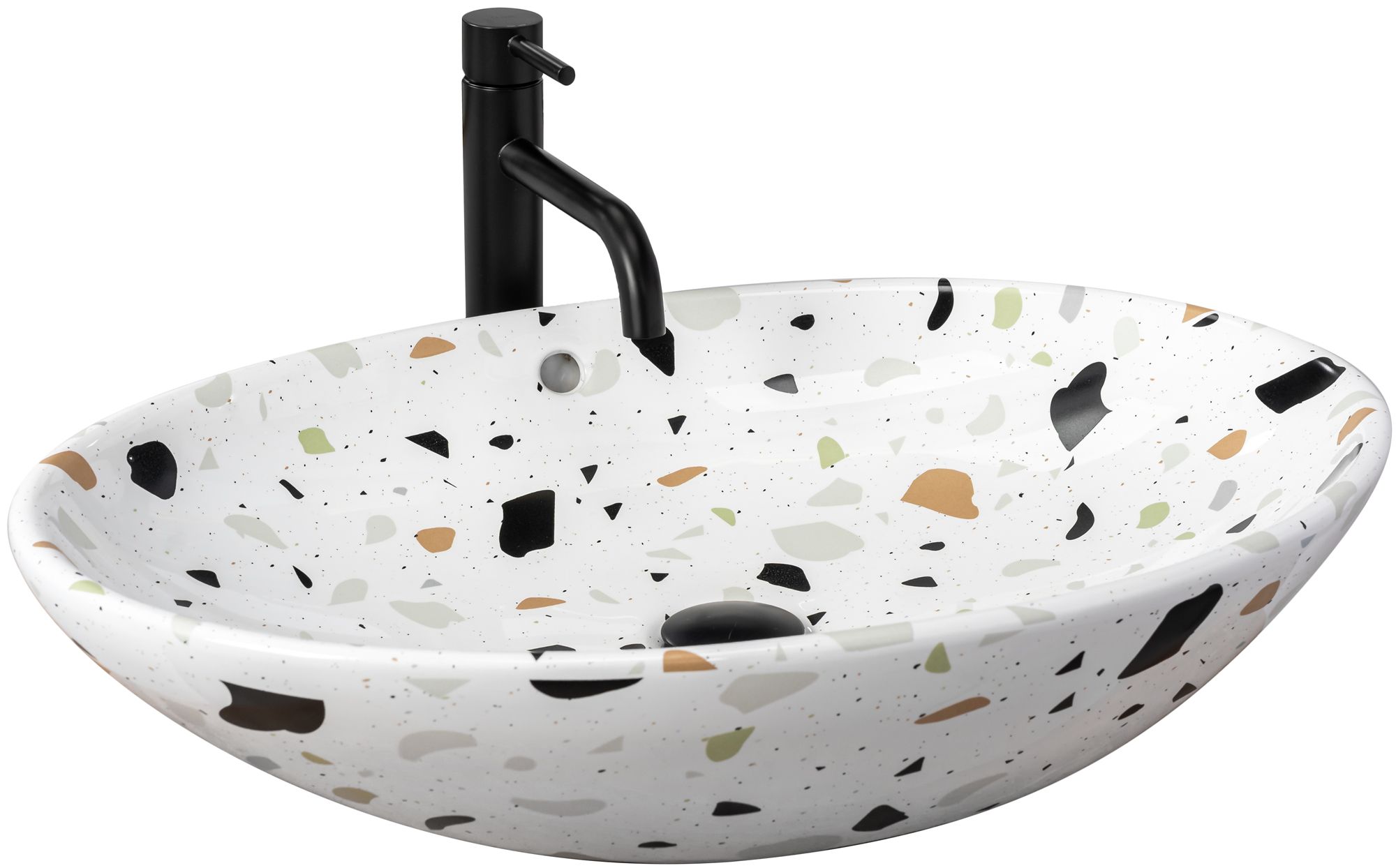 Lavoarul pentru blat REA Olga Terazzo se va potrivi perfect în băile moderne sau clasice datorită designului său universal în formă de bol. Montat pe blat, acesta poate fi adaptat oricărei băi. Cu forme ergonomice, este practic și funcțional în utilizarea de zi cu zi.