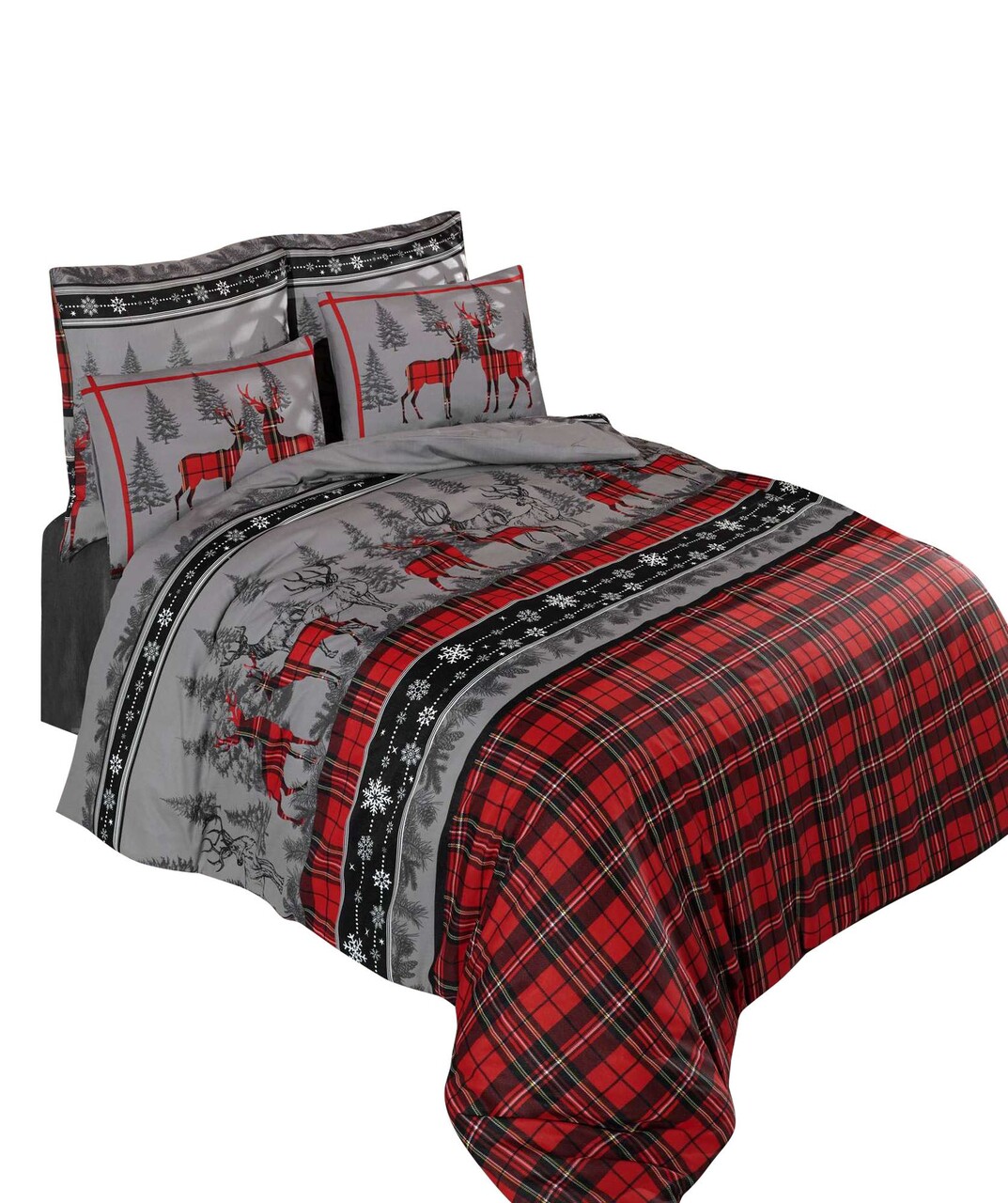 Lenjerie de pat dubla (EU) (IT) 3 piese L'essentiel Maison Christmas Roșu / Gri / Negru