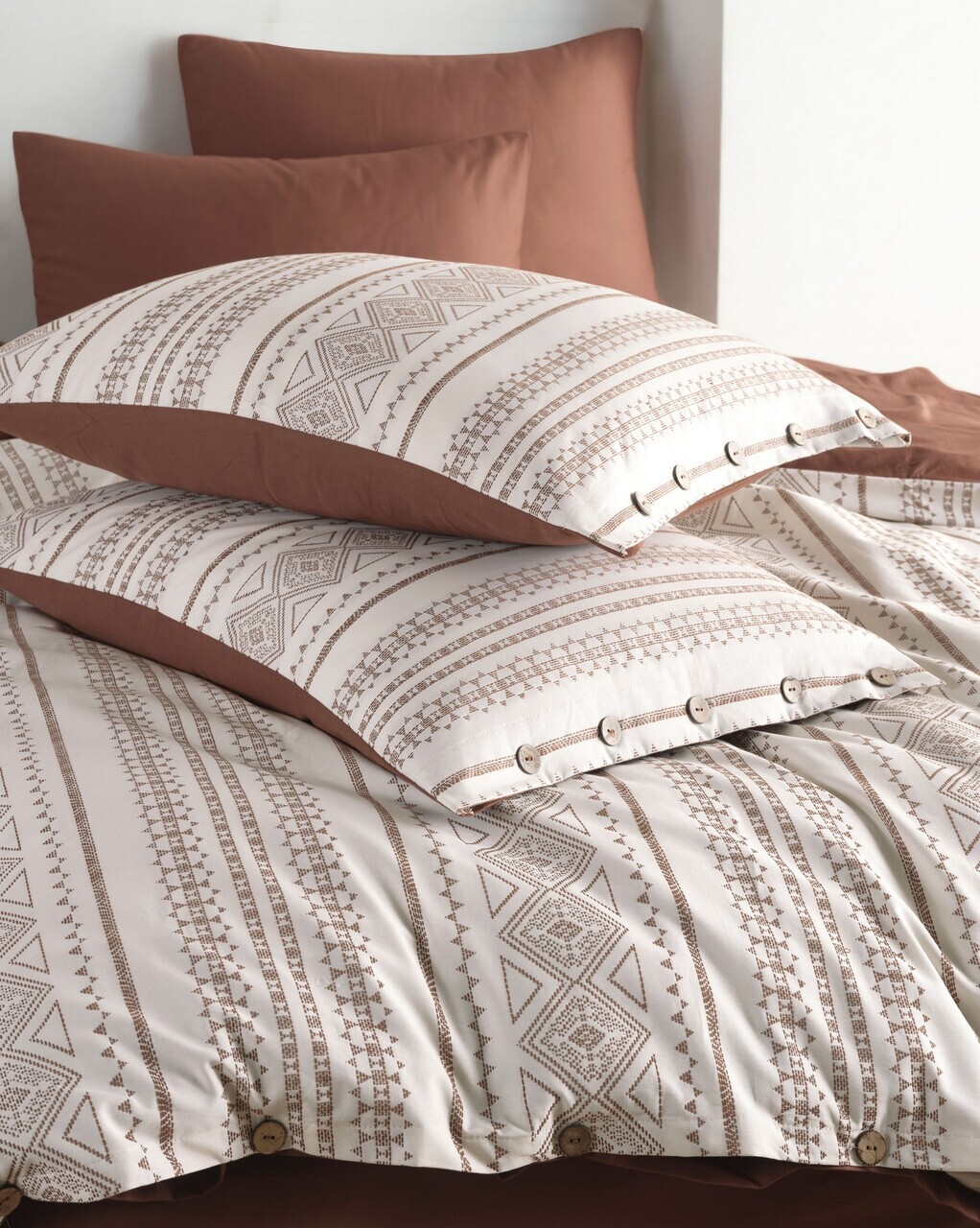 Lenjerie de pat dubla L'essentiel Maison Coastal Trio Bumbac Satinat Teracotă / Crem