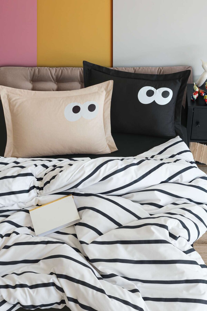Lenjerie de pat dubla Super King (EU) (IT) 3 piese L'essentiel Maison Funny Negru/Maro