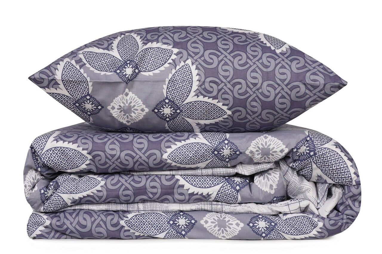 Lenjeria de pat dublă Super King (EU) (IT) L'essentiel Maison impresionează prin designul său elegant în nuanțe de albastru închis, gri și alb. Fabricată din bumbac Ranforce, aceasta oferă un confort deosebit, iar materialul imprimat cu pigment asigură durabilitate și culori vibrante. Setul include o husă de pilotă de 260 x 220 cm și două fețe de pernă de 50 x 80 cm. Ușor de întreținut, se spală la mașină la 40 °C. Husa de pilotă se închide cu nasturi, iar fețele de pernă au un sistem de închidere tip plic, pentru un aspect îngrijit și elegant.