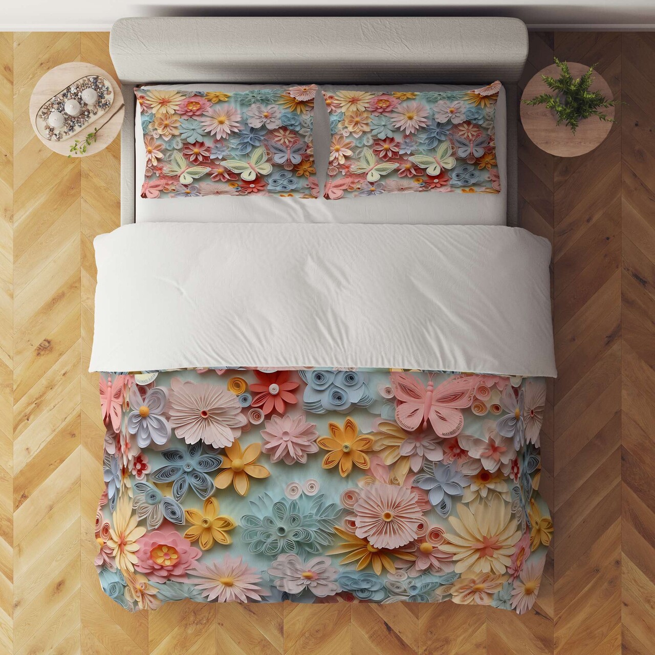 Transformă patul într-o grădină înflorită și alege cele mai noi modele de lenjerii de pat cu imprimeuri cu flori, cu trandafiri, bujori, maci, o varietate de modele și clasice si 3D. Fie ca vorbim de stilul retro, vintage, clasic sau modern, motivele florale vor anima atmosfera, pentru un interior plin de viață și de culoare.