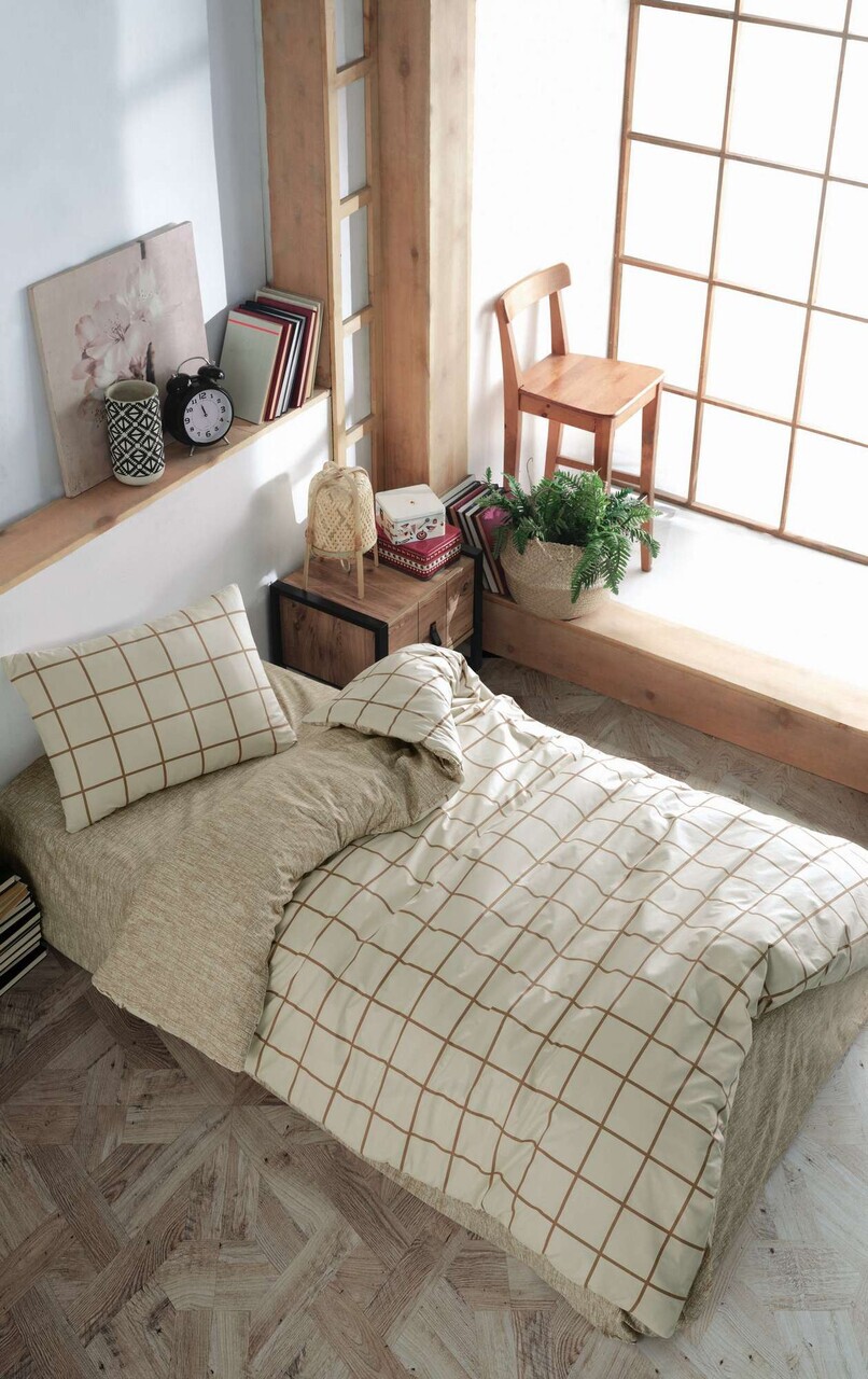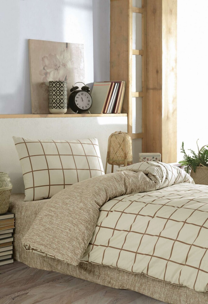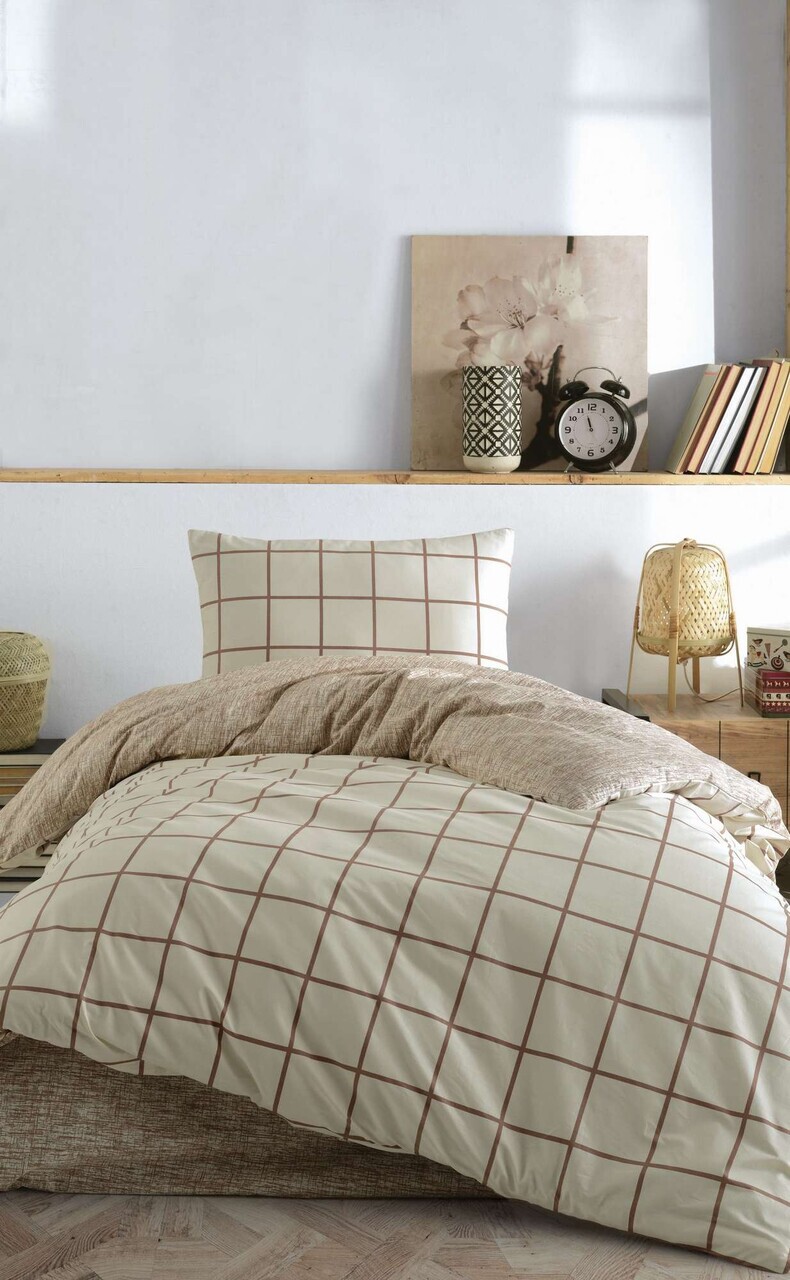 Lenjerie de pat pentru o persoana L'essentiel Maison Kare Bumbac Ranforce Crem