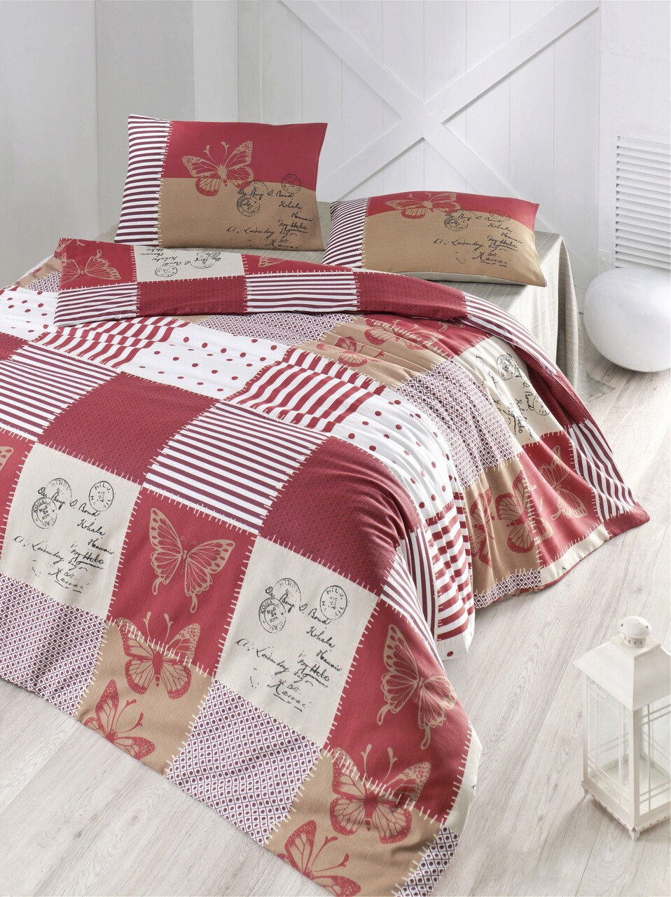 Set lenjerie de pat pentru o persoana Single XL (DE) 2 piese L'essentiel Maison Butterfly v2 Roșu / Crem / Bej / Alb / Roșu Claret