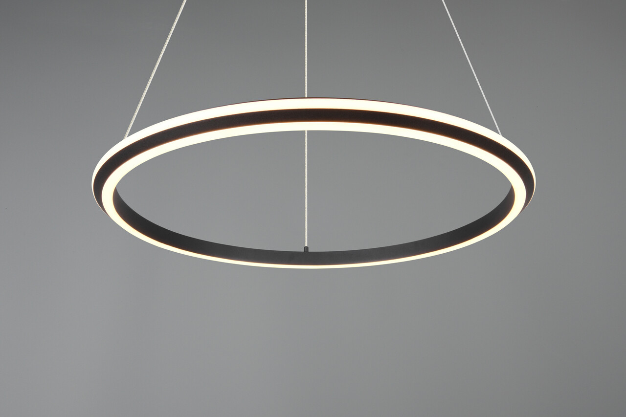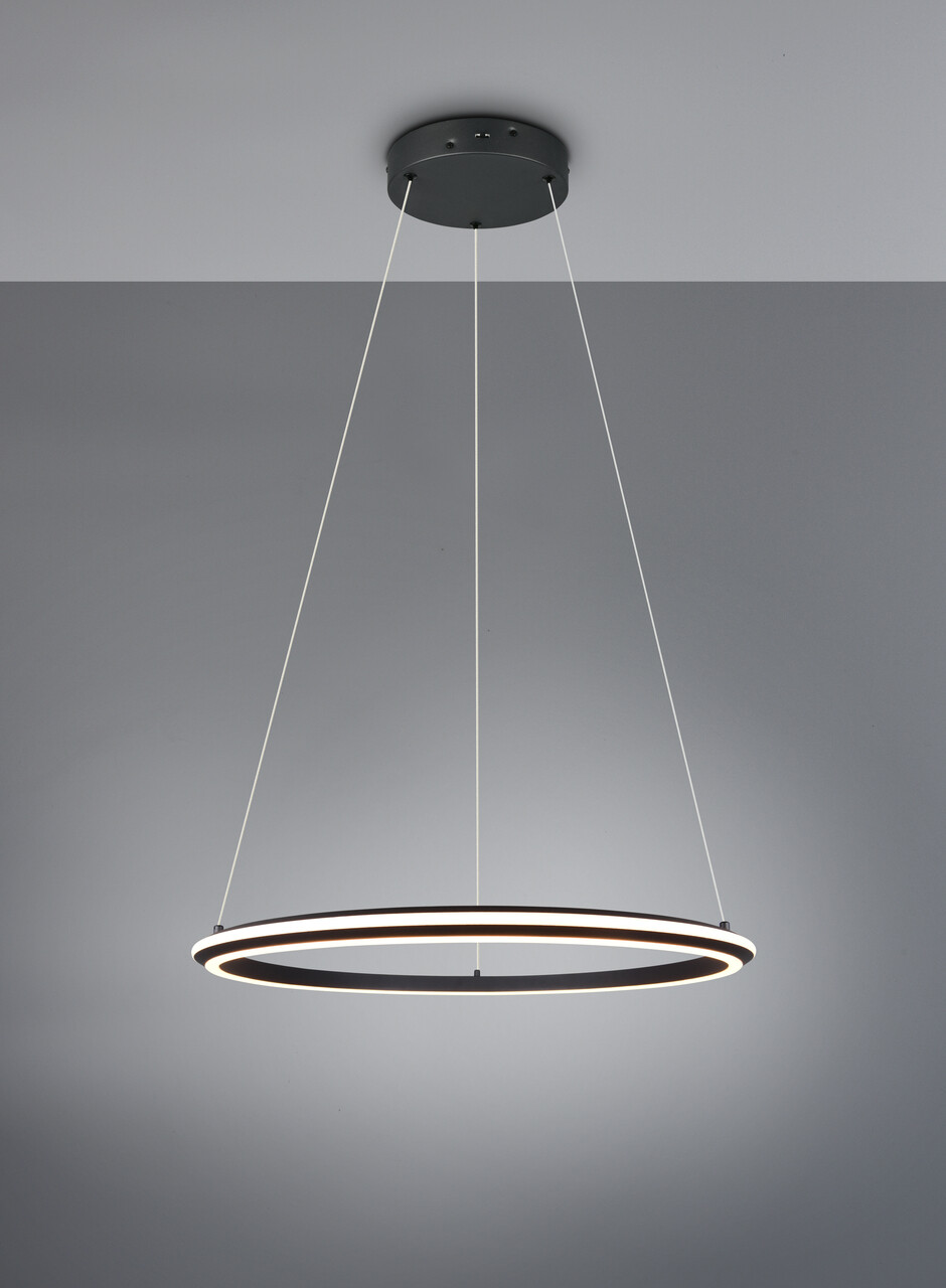 Lustra Amador de la brandul TRIO este un corp de iluminat elegant, reglabil pe înălțime, destinat montării exclusiv pe tavan. Aceasta dispune de un sistem inovator DIP SWITCH, prin care poți selecta trei culori ale luminii cu ușurință, direct de la bec, oferindu-ți o atmosferă personalizată. Luminozitatea este ajustabilă pe trei niveluri printr-un întrerupător de lumină convențional. Cu o putere de 48W și un flux luminos de 5800 lumeni, lustra asigură o iluminare eficientă și plăcută. Construită din metal cu finisaj negru mat, lustra Amador îmbină designul modern cu funcționalitatea.