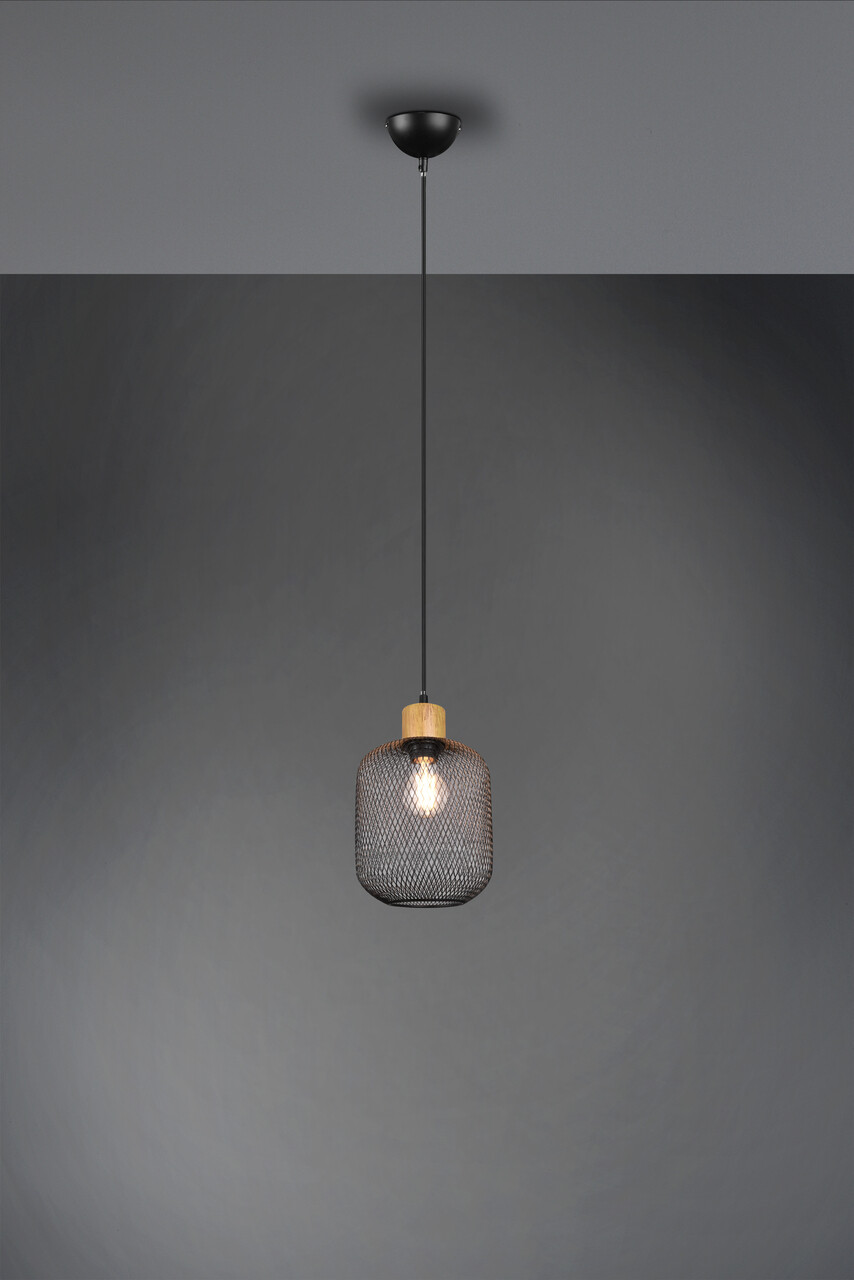 Lustra Calimero RL 18x150 cm cu o putere de 40W și soclu E27, este alegerea perfectă pentru a adăuga un strop de eleganță oricărei încăperi. Abajurul din lamelar metalic negru mat, împreună cu detaliile din lemn, conferă un aspect vintage-modern, iar decupajele mici creează un joc de lumini și umbre, oferind accente decorative unice. Ideală pentru sufragerie, living sau spații cu înălțime, lustra se potrivește perfect deasupra mesei sau pe o scară cu spirala. Se recomandă utilizarea becurilor LED pentru o iluminare eficientă și durabilă. (Becul nu este inclus.)