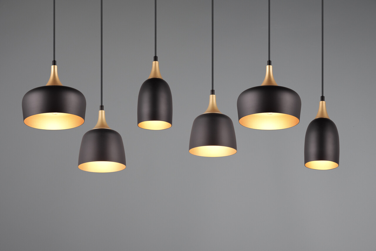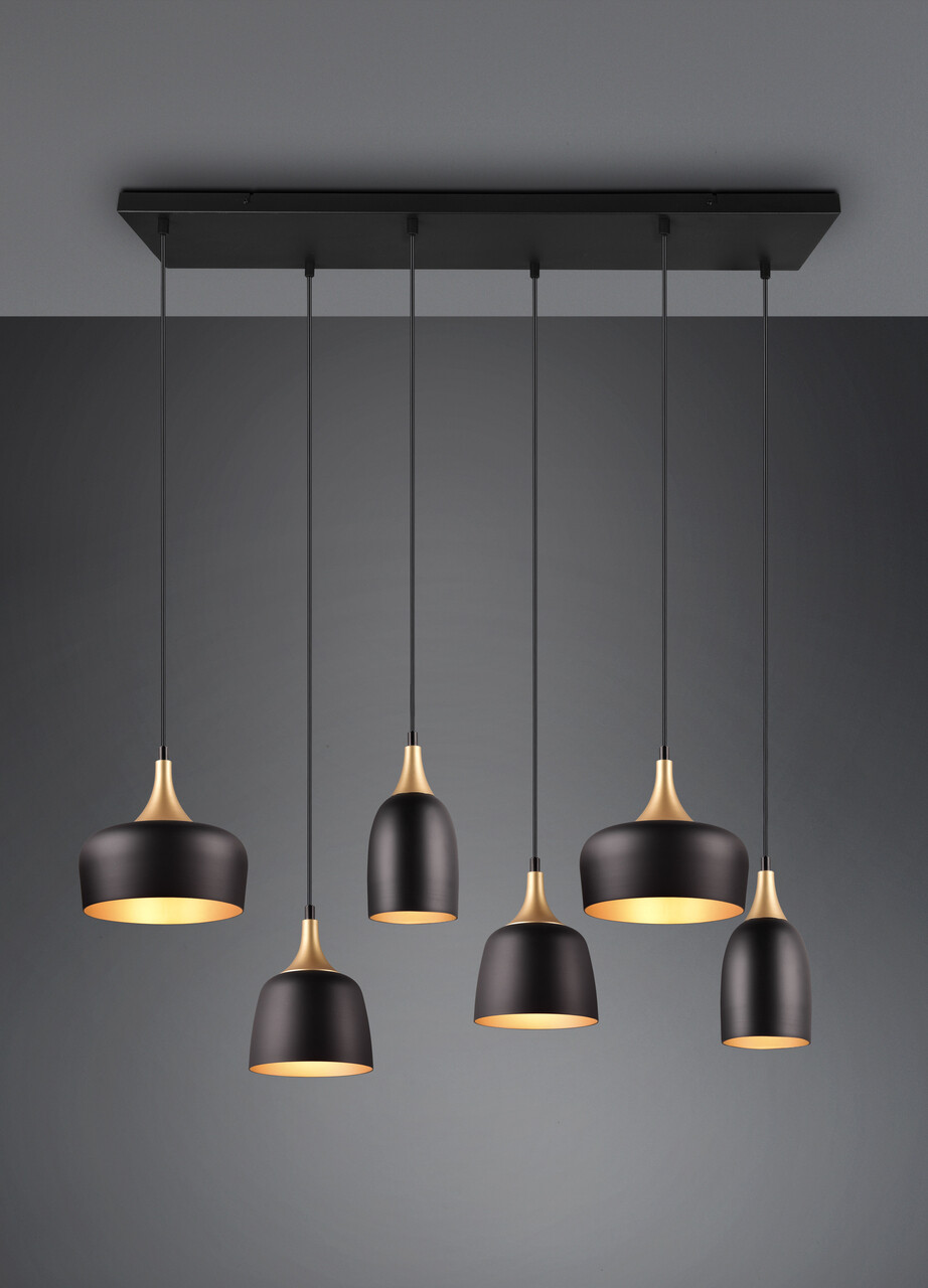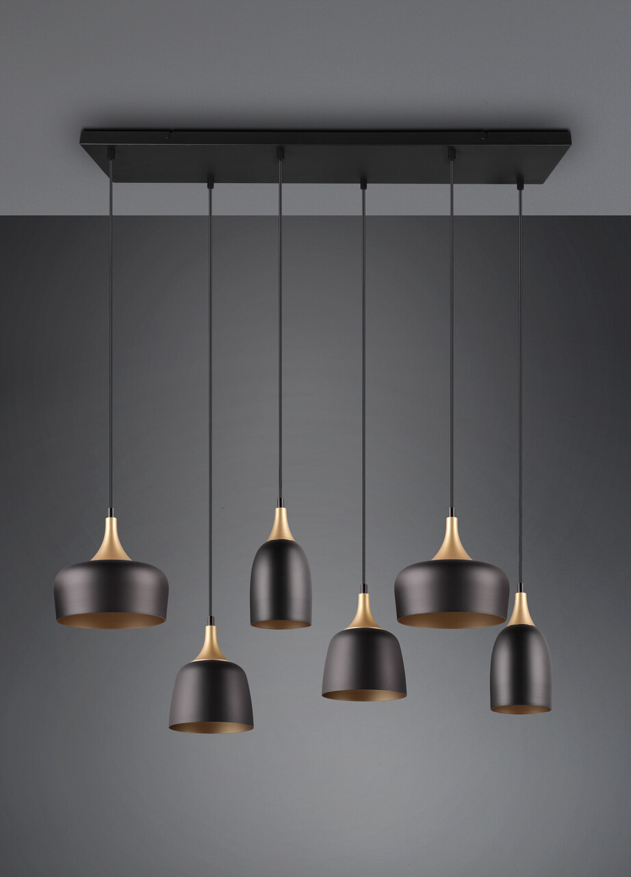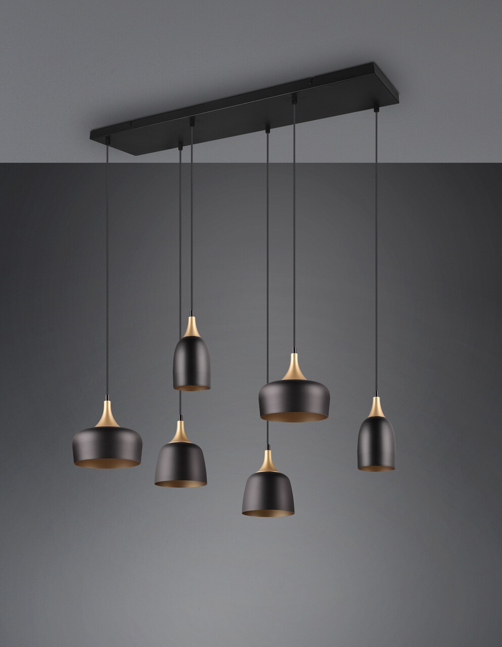 Lustra Chiraz TRIO 90.5x32.5x150 cm 25W 6x E14 metal negru mat/auriu
