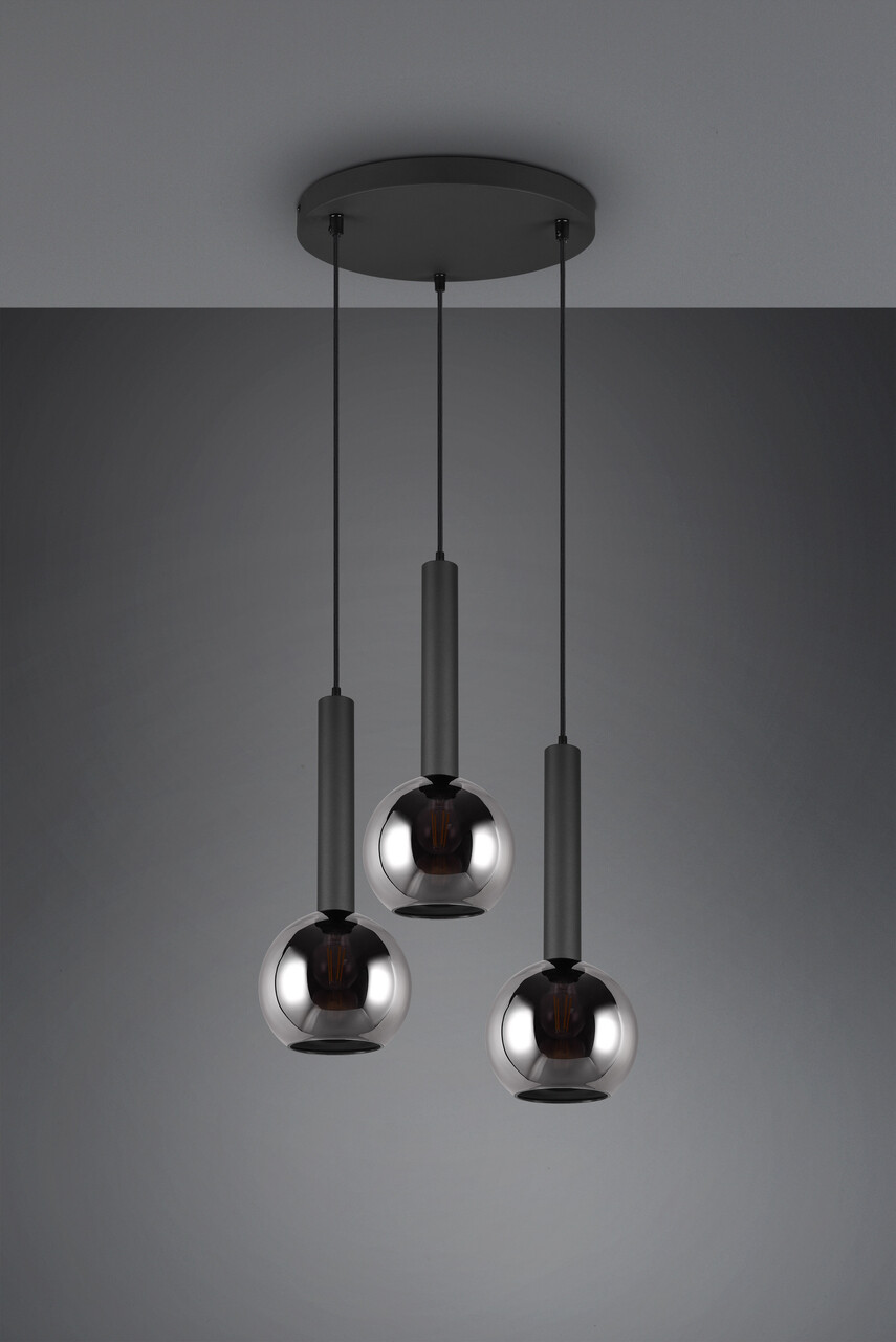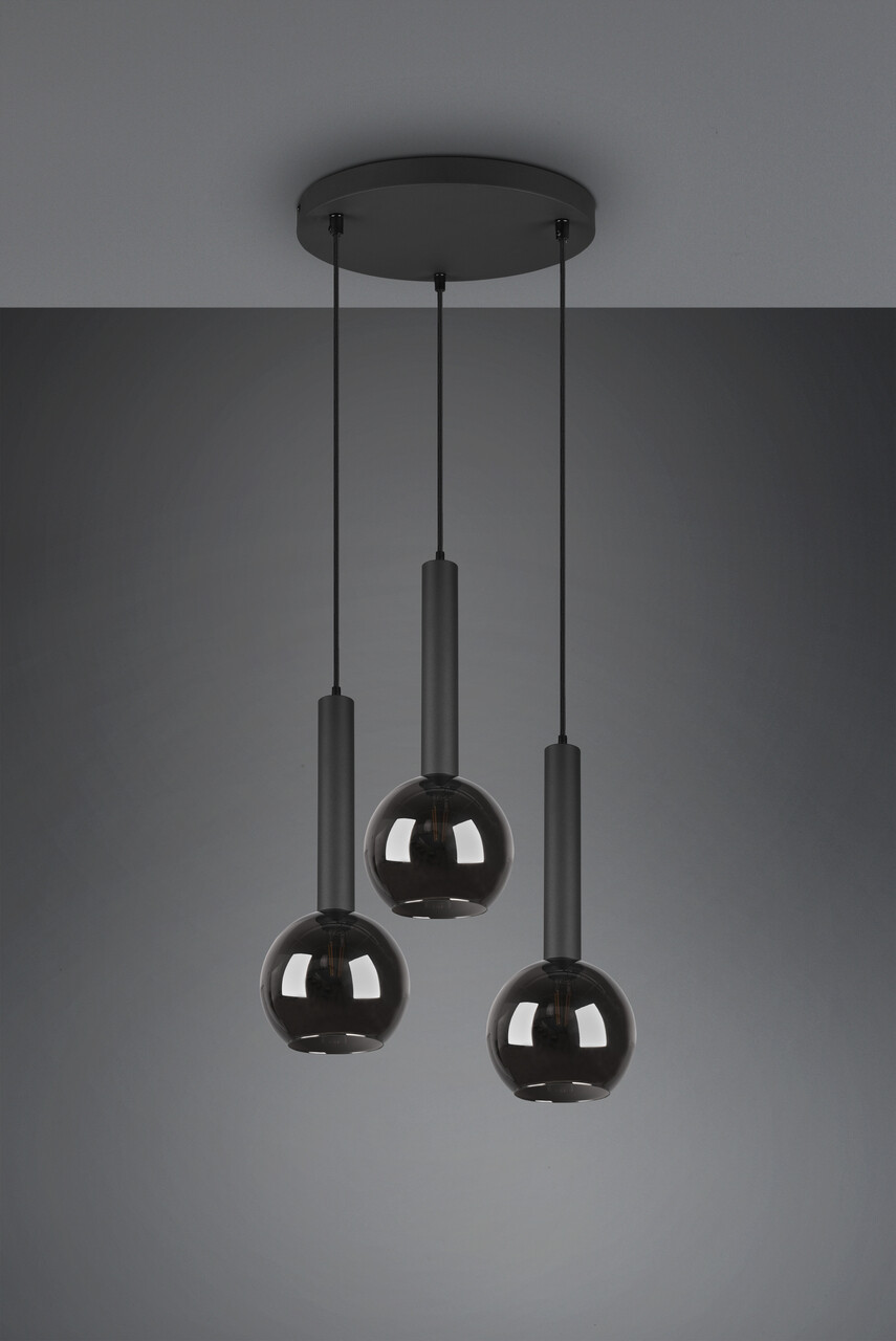 Lustra Clayton TRIO 45x150 cm 28W 3x E27 metal negru mat este un corp de iluminat suspendat modern, ce îmbină cu rafinament abajururi din sticlă cu un finisaj metalic elegant. Forma rotundă a celor trei abajururi emite o lumină caldă, creând o atmosferă confortabilă în orice încăpere. Designul său atemporal se integrează perfect în diverse stiluri de interior și palete de culori. Recomandăm utilizarea becurilor LED pentru o iluminare eficientă și durabilă. Lustra se evidențiază prin calitatea luminii și versatilitatea sa, aducând un plus de eleganță oricărei amenajări.
