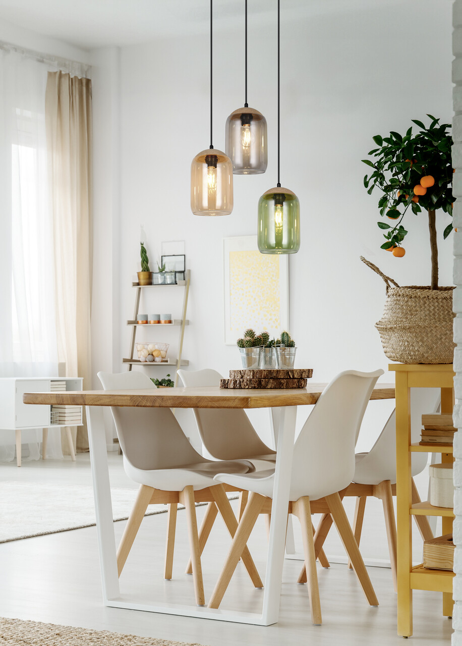 Lustra Cork TRIO 30x150 cm 10W 3x E27 combină armonios sticla reciclată și pluta, creând un joc fascinant de lumini și culori. Paleta de nuanțe verde, chihlimbar și fumuriu aduce un sentiment de conexiune cu natura, iar designul modern se integrează perfect în living sau zona de luat masa, oferind o ambianță caldă și confortabilă. Fabricată dintr-un mix de materiale, lustra conferă un echilibru între naturalete și stil contemporan. Se recomandă utilizarea unui bec LED pentru o iluminare eficientă și uniformă. Becurile nu sunt incluse.