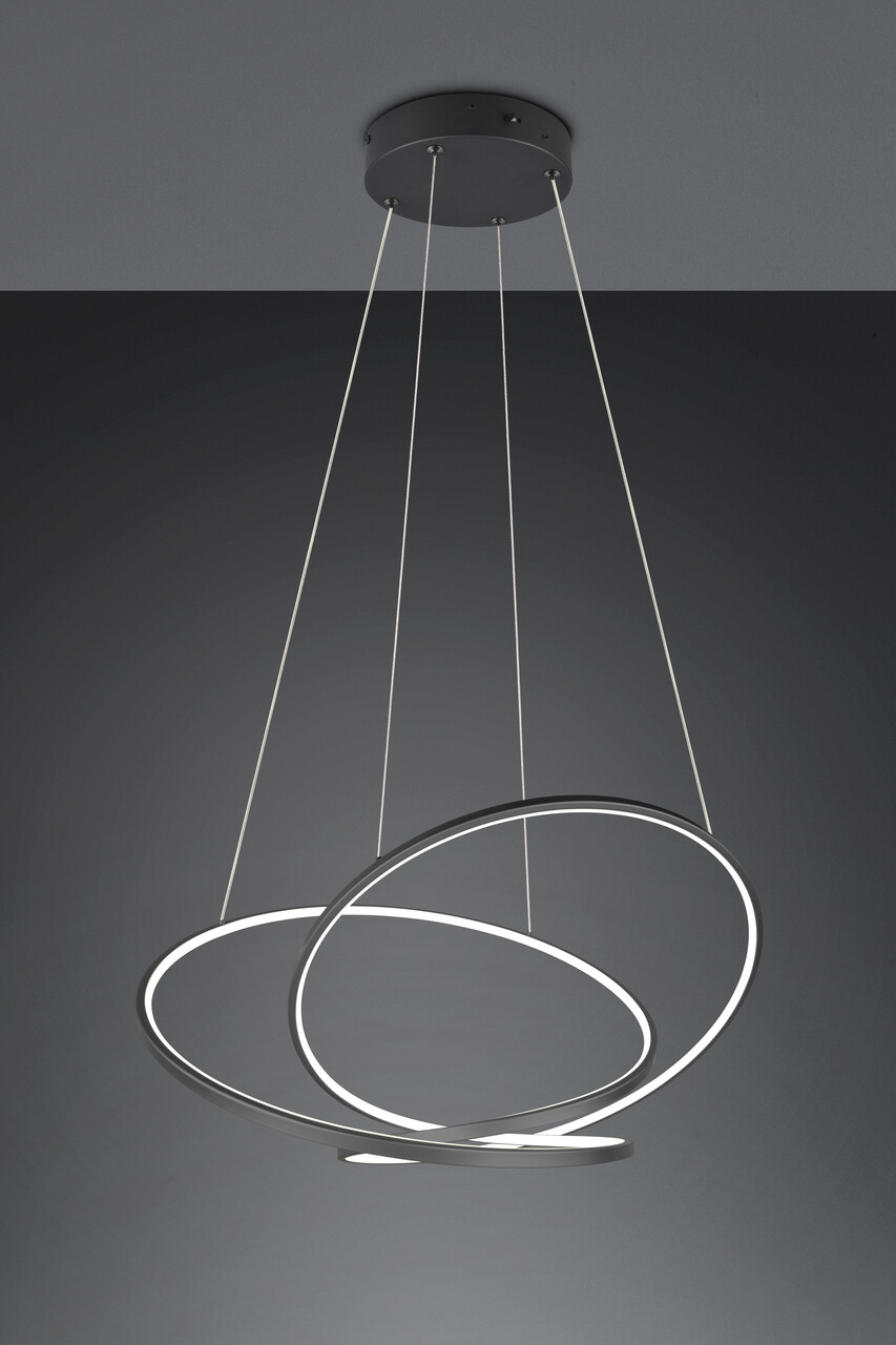Lustra Darvin TRIO 84x66x150 cm 52W 1x SMD, cu un design artistic și curbat, devine un punct de atracție în orice living sau sufragerie. Culoarea negru mat se integrează elegant în orice ambient, în timp ce banda LED de înaltă calitate asigură o iluminare eficientă și plăcută. Luminozitatea și temperatura culorii pot fi reglate convenabil, adaptându-se cerințelor tale. Cu o durată de viață de 25.000 h și un flux luminos de 6700 lumeni, această lustra combină stilul modern cu eficiența energetică, devenind astfel un element versatil și funcțional în orice spațiu.