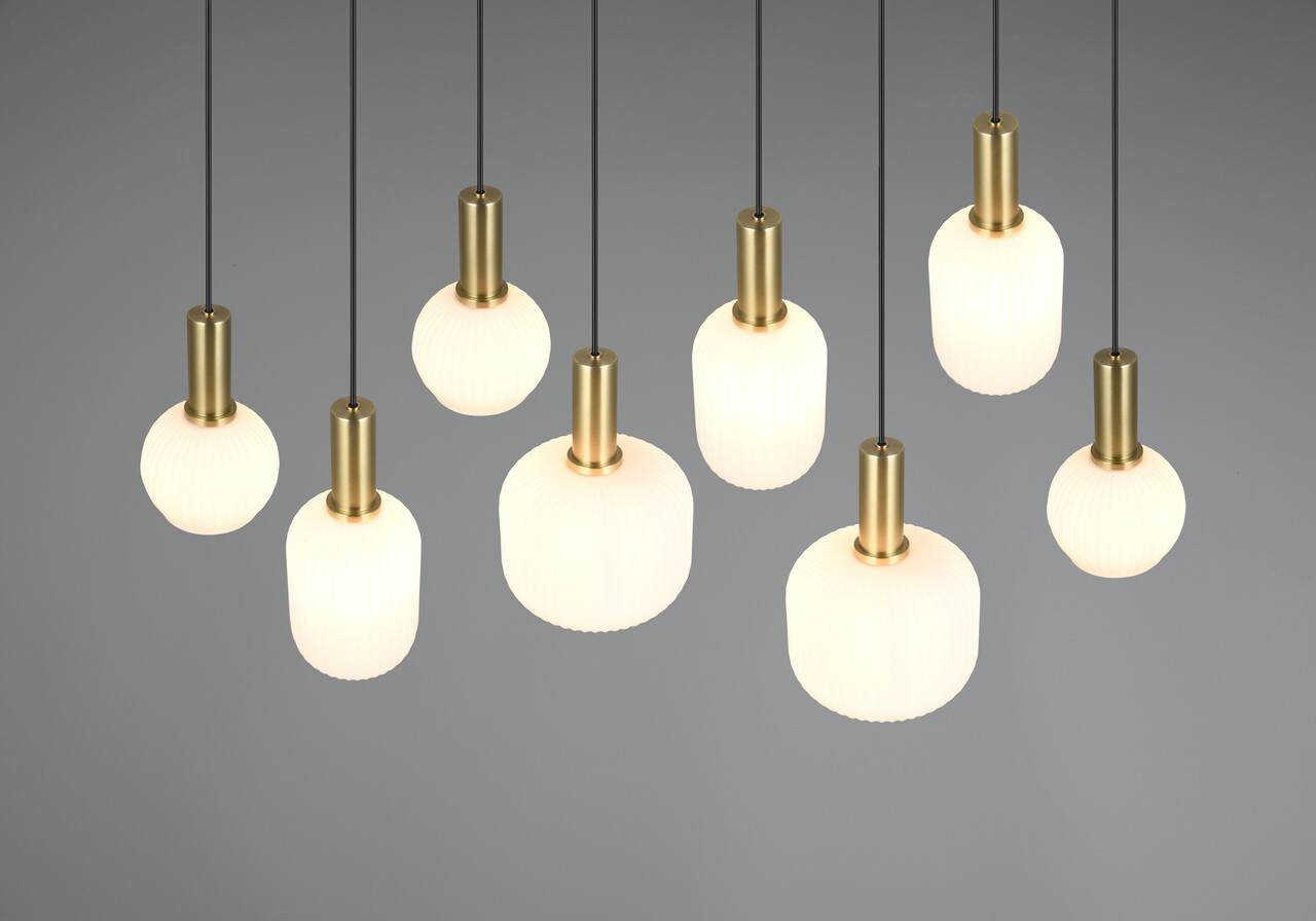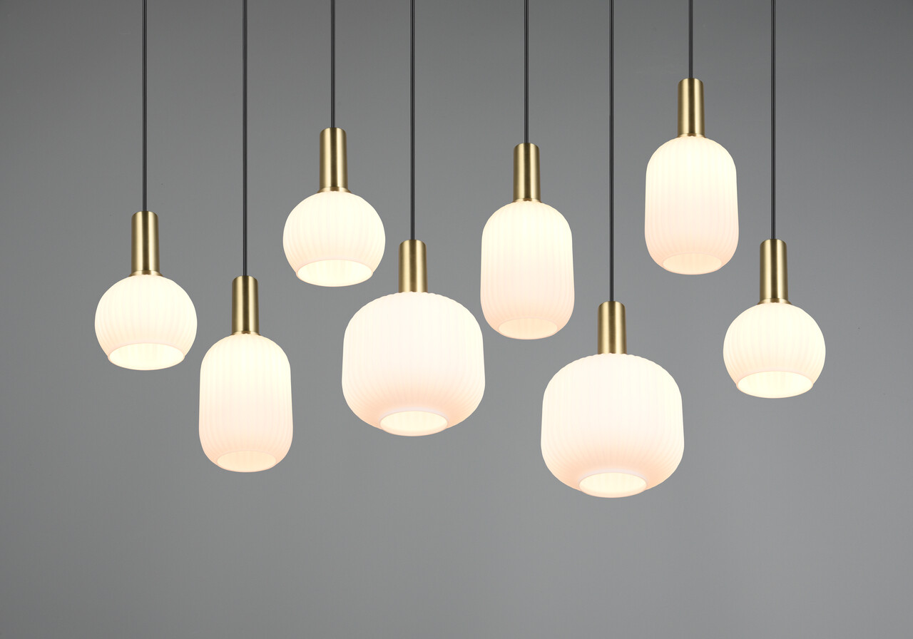 Lustra Diva TRIO 115x20x150 cm cu 8 socluri E27 și putere de 10W aduce un farmec aparte în orice interior. Abajururile din sticlă, cu un design special, difuzează lumina uniform, creând o atmosferă caldă și confortabilă. Combinând culori vibrante, lustra devine un punct de atracție, perfectă pentru a fi suspendată deasupra mesei de sufragerie sau a unei masute de cafea. Recomandăm utilizarea becurilor LED pentru o iluminare modernă și eficientă. Cu o durată lungă de viață și o generare redusă de căldură, Diva este alegerea ideală pentru orice încăpere.