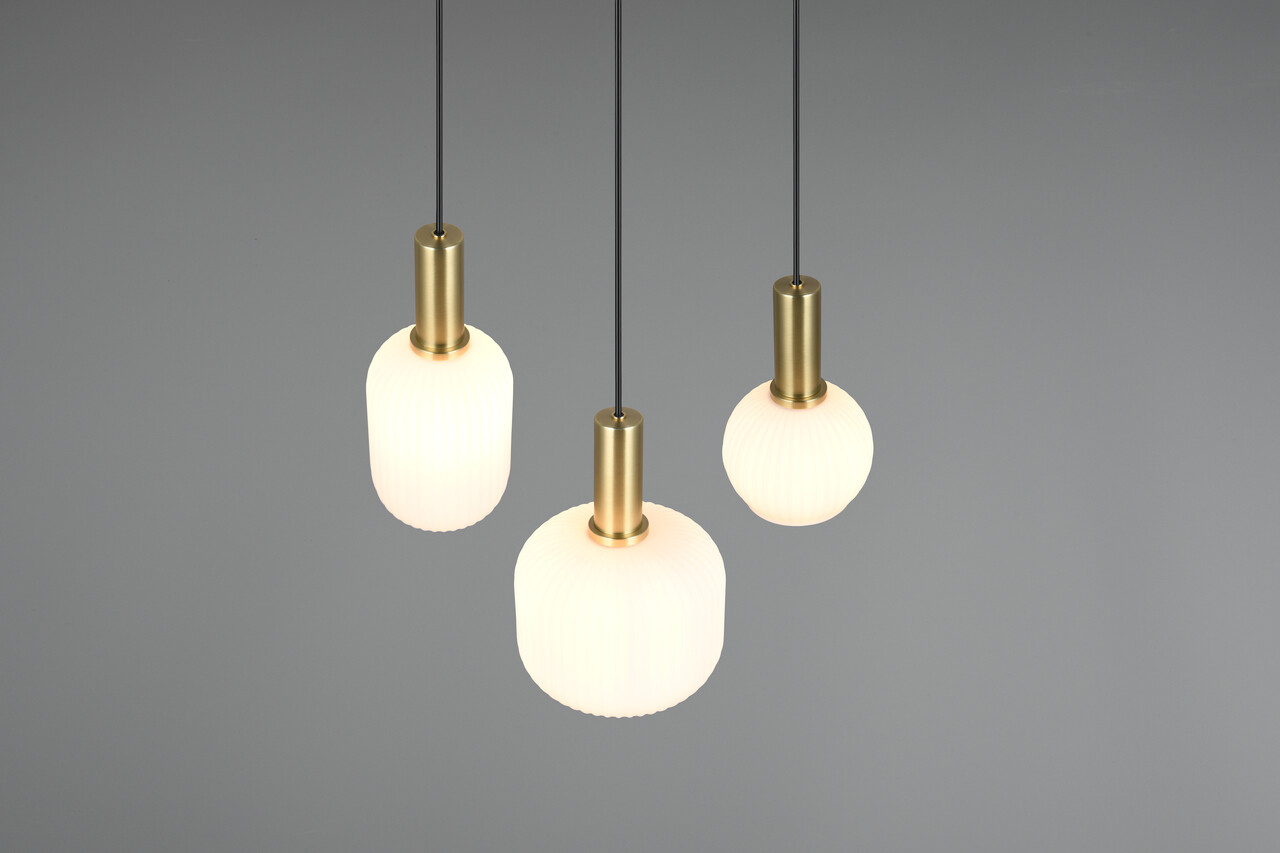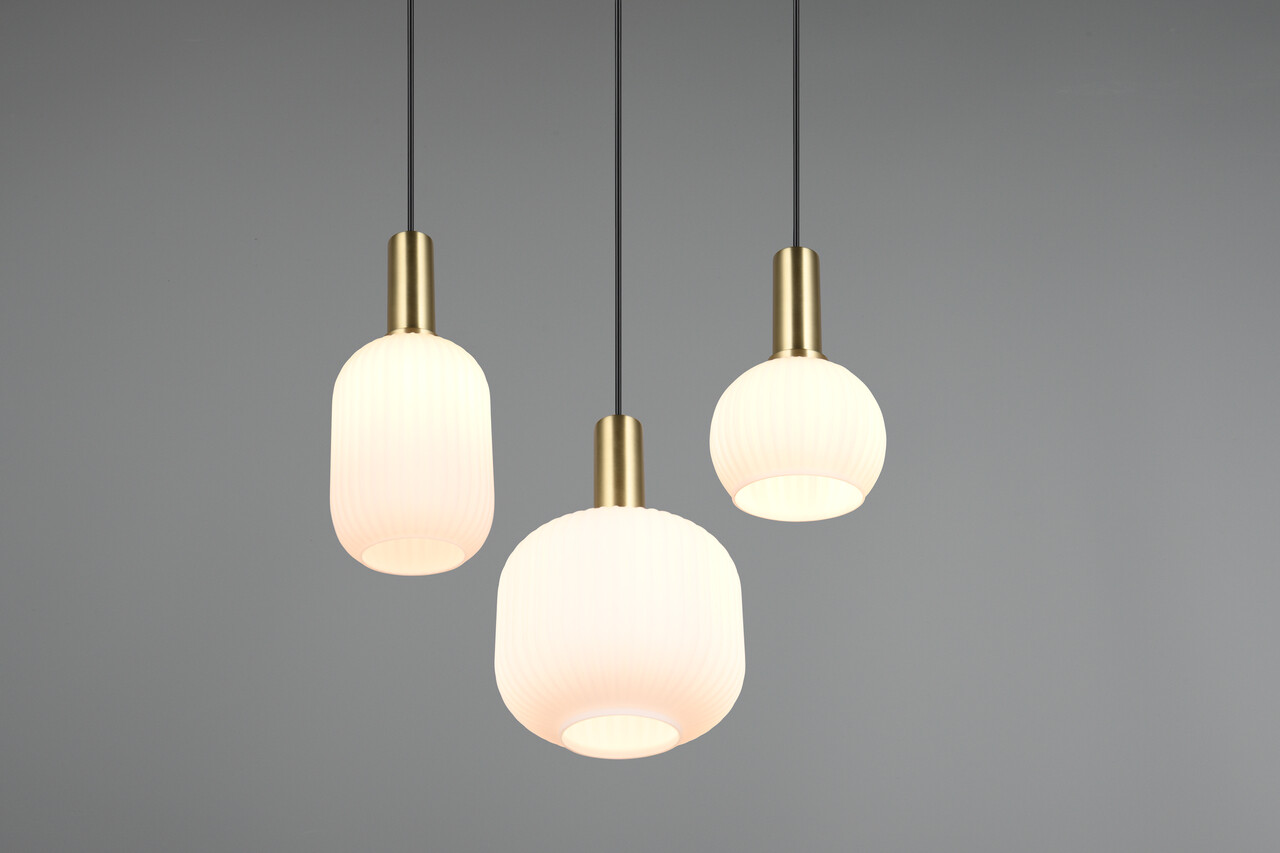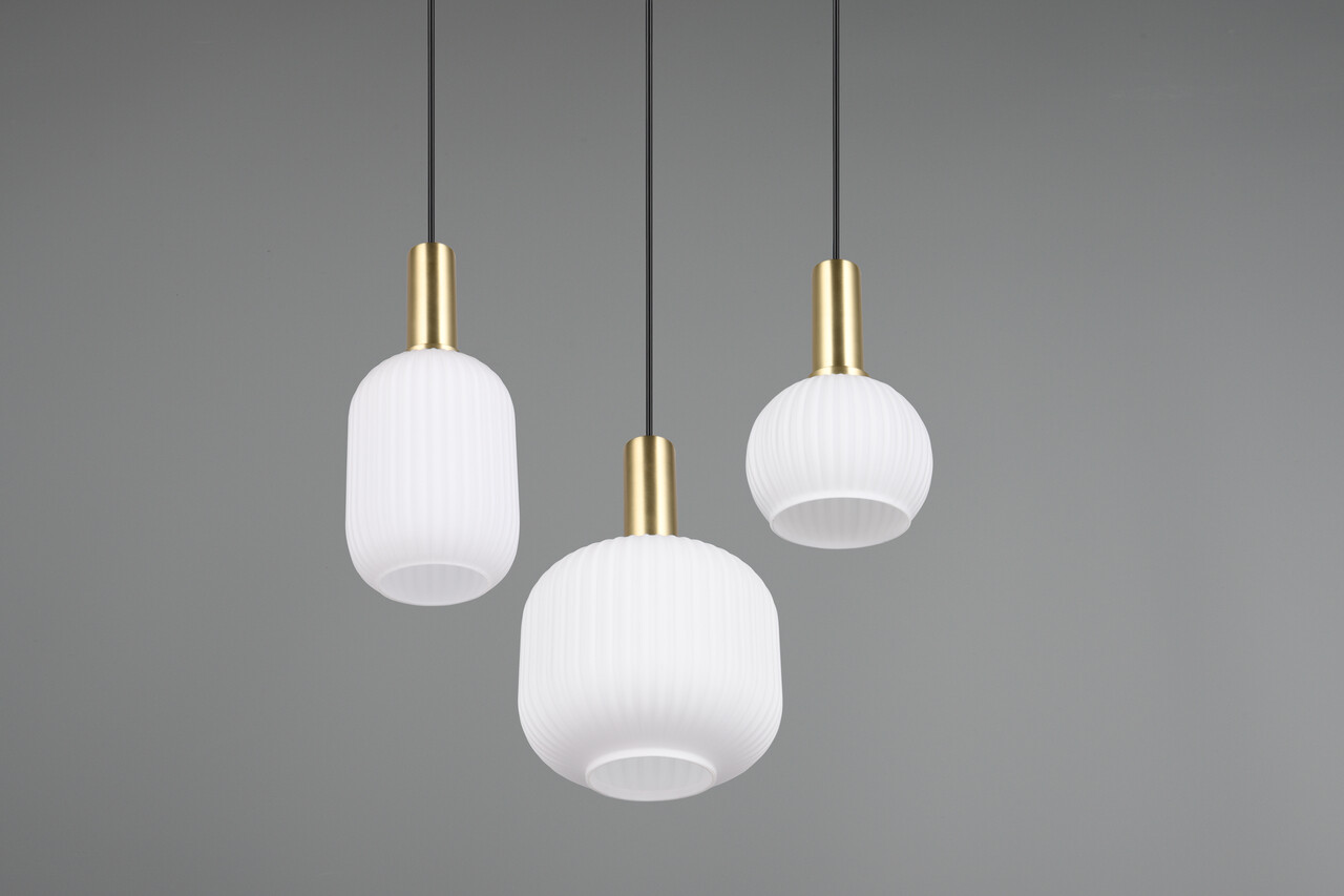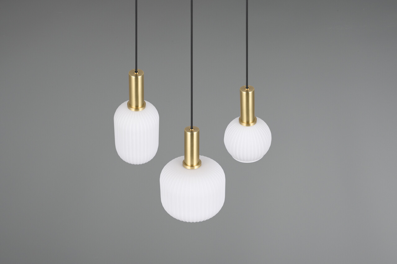 Lustra Diva TRIO măsoară 38.5x30x150 cm și oferă o iluminare modernă și elegantă, având un design atrăgător cu abajururi din sticlă multicoloră. Suspendată deasupra mesei de sufragerie sau a unei masute de cafea, aceasta devine un punct de atracție remarcabil, creând o atmosferă caldă și confortabilă prin difuzarea luminii fără strălucire. Lustra are un grad de protecție IP20 și funcționează cu trei becuri E27, recomandându-se utilizarea becurilor LED pentru o iluminare eficientă și durabilă. Brandul TRIO garantează o calitate superioară și un design inovativ.