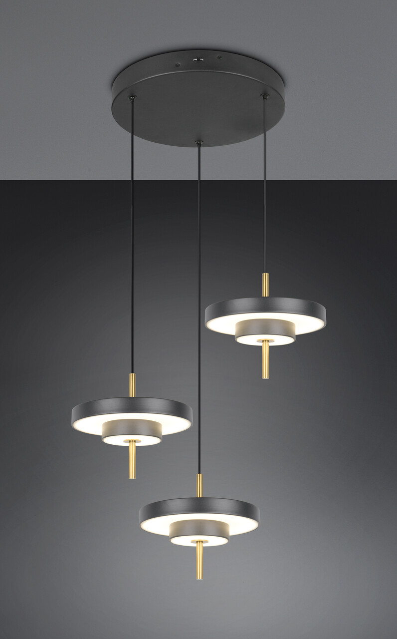 Lustra Keaton de la TRIO, cu dimensiuni de 45x150 cm, aduce un plus de eleganță oricărei încăperi. Fabricată din metal negru și auriu, această lustra este reglabilă pe înălțime și se montează exclusiv pe tavan. Cu ajutorul DIP SWITCH-ului, poți alege între trei culori ale luminii (alb cald, alb neutru și lumina naturală albă) și poți ajusta intensitatea luminoasă pe trei niveluri, utilizând un întrerupător convențional. Cu o durată de viață de 30.000 de ore și un flux luminos de 1200 lumeni, lustra Keaton oferă un iluminat eficient și plăcut, perfect pentru orice ambient.