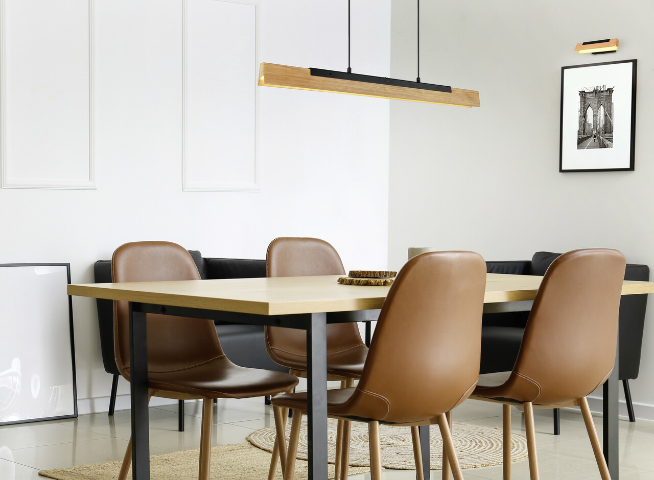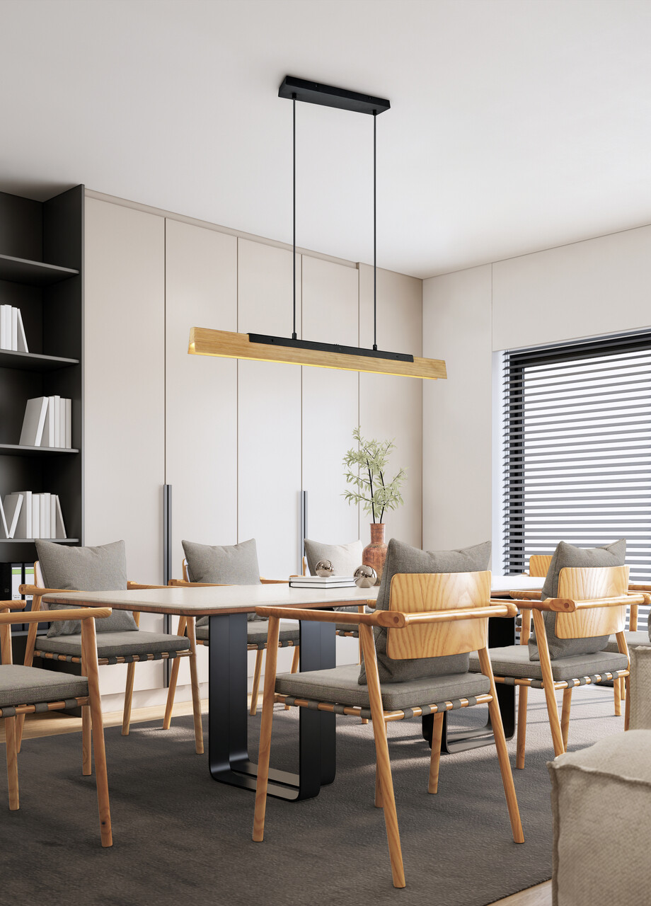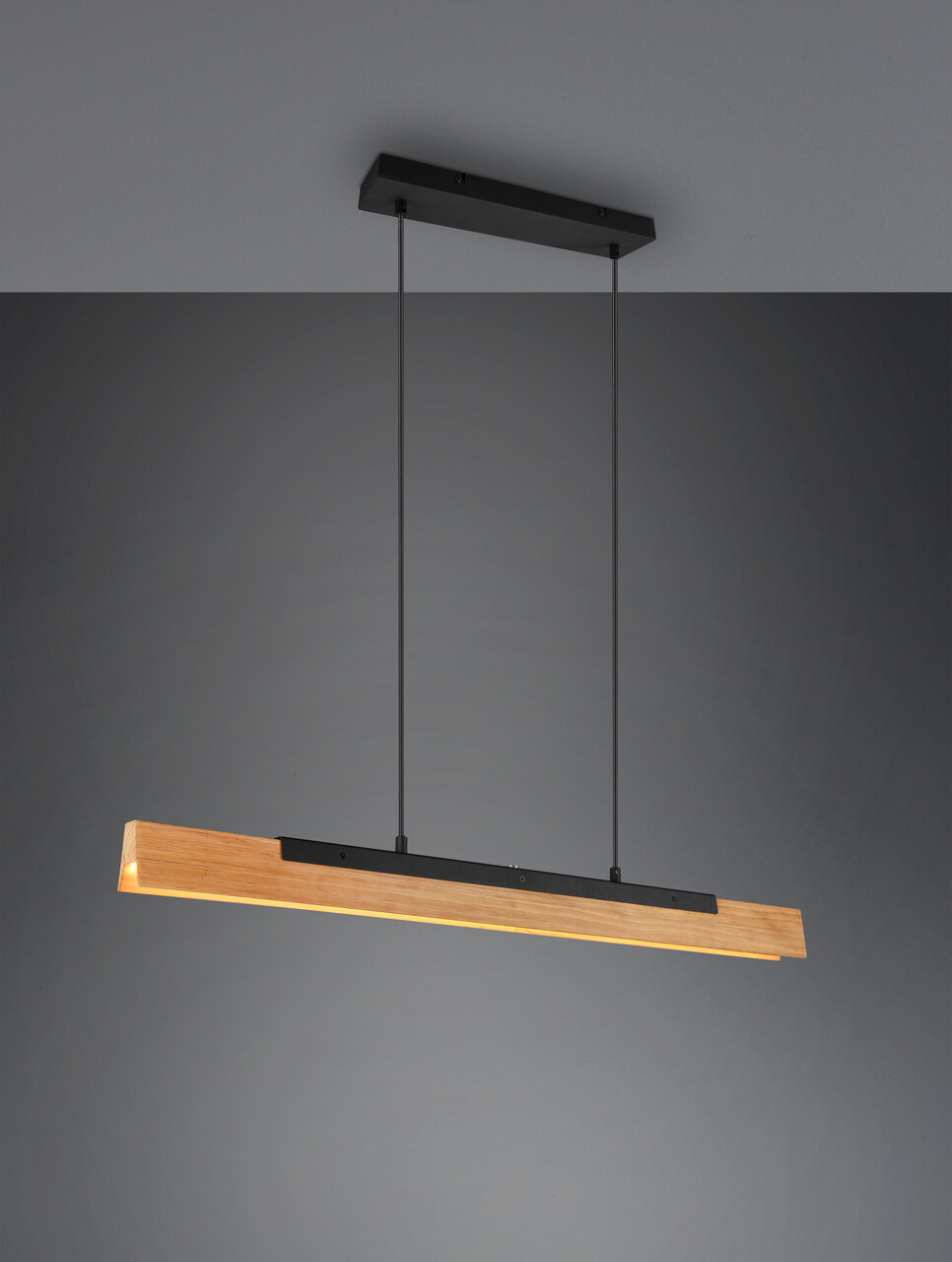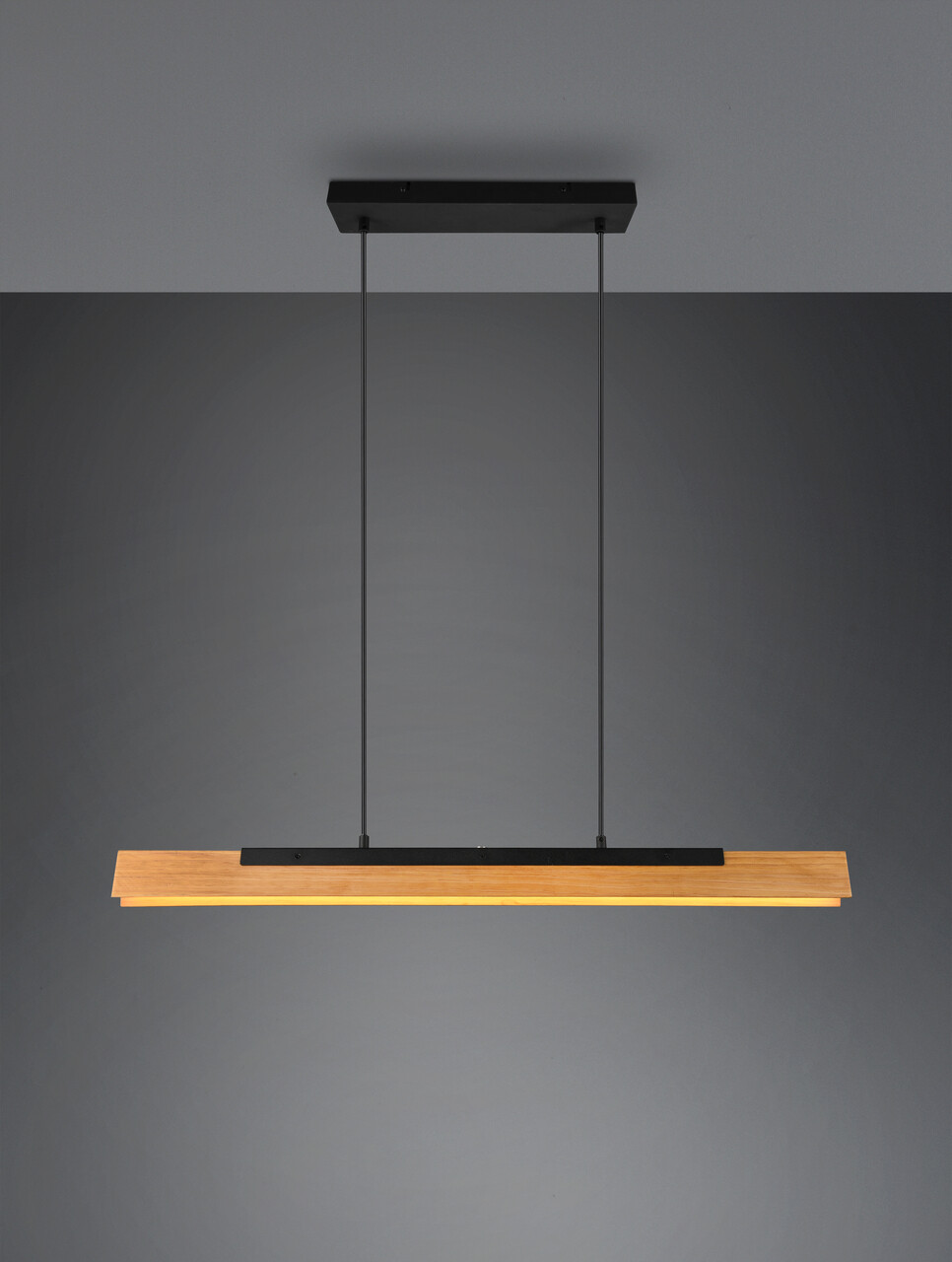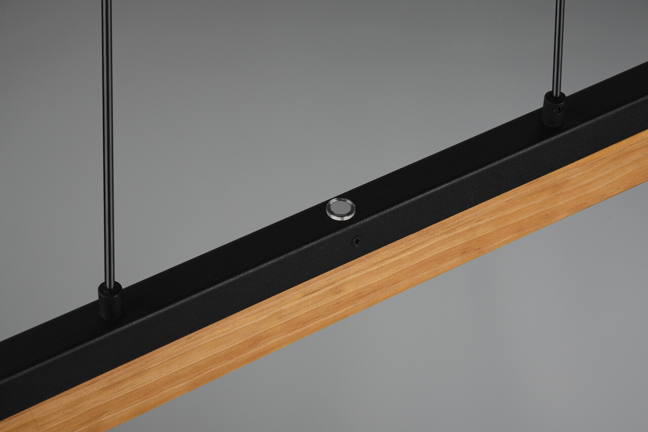 Lustra Kerala TRIO 90x8.5x150 cm 25W 1x SMD este o alegere perfectă pentru a adăuga un accent elegant oricărui spațiu de locuit. Cu un design contemporan, ce îmbină metalul negru mat cu lemnul natural, această plafonieră aduce o atmosferă caldă și confortabilă în casa dumneavoastră. Luminozitatea poate fi ajustată cu ușurință printr-o atingere, oferind versatilitate în iluminare. Cu o durată de viață de 30.000 de ore și o eficiență energetică ridicată, lustra utilizează tehnologia LED modernă, asigurându-se că veți beneficia de o calitate excelentă a luminii și un consum redus de energie.