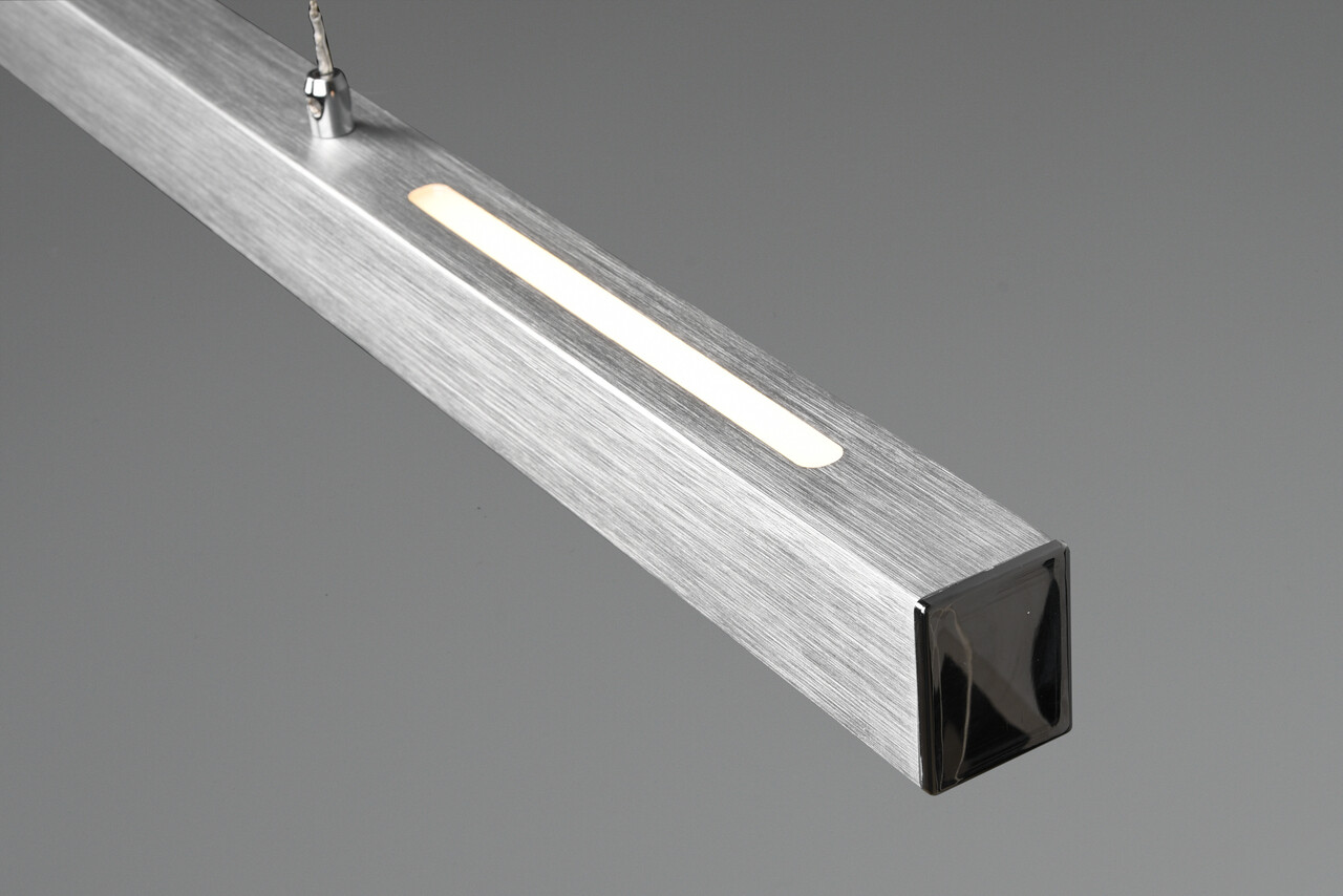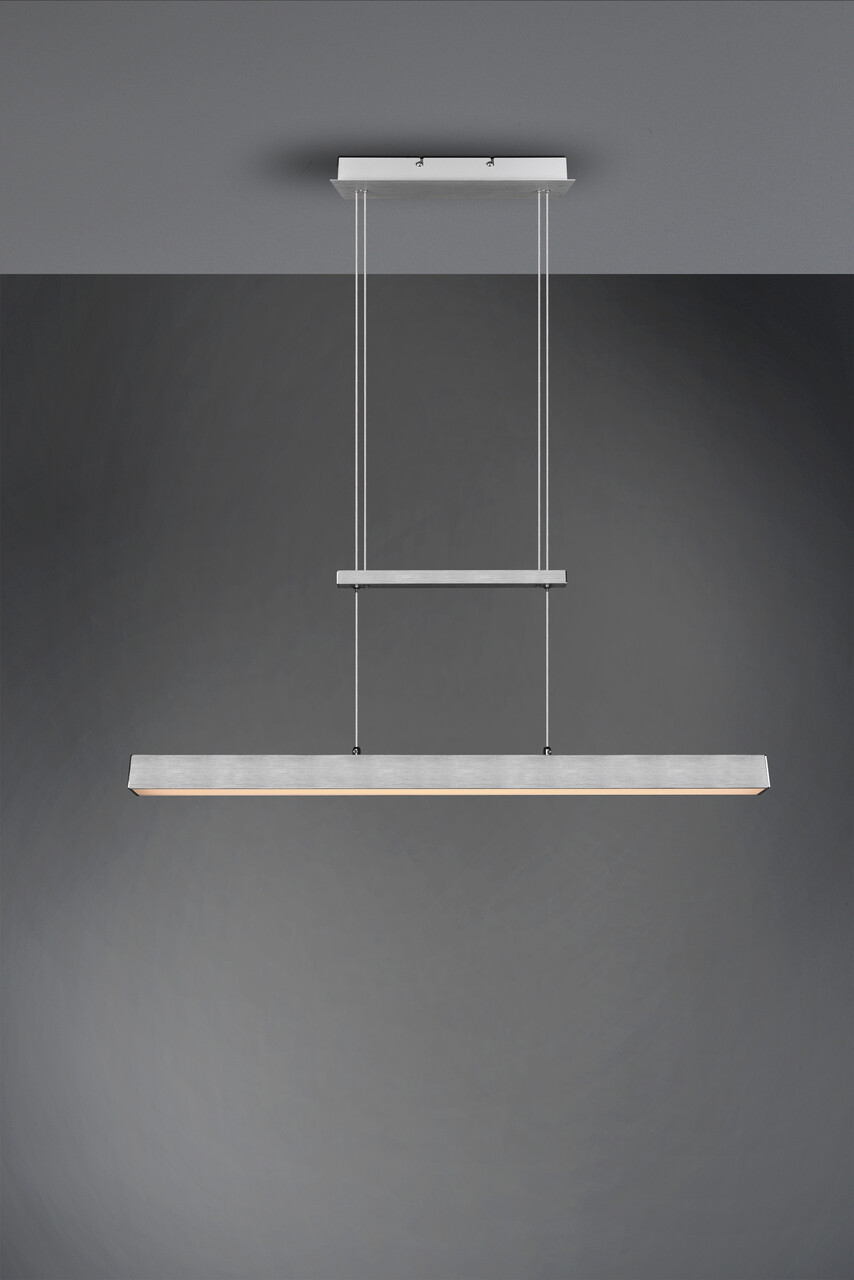 Lustra Paros, cu un design purist și modern, oferă un iluminat ascendent și descendent ce creează o atmosferă confortabilă. Înălțimea lampii poate fi ajustată cu ușurință, iar variatorul SWITCH integrat permite alegerea luminozității ideale (100%, 50% și 25%). Fabricată din aluminiu periat, lustra se integrează perfect în orice interior, având tehnologie LED care asigură o durată lungă de viață și o generare redusă de căldură. Cu o temperatură de culoare de 3000K și un flux luminos de 2500 lumeni, lustra Paros este alegerea perfectă pentru orice ocazie.