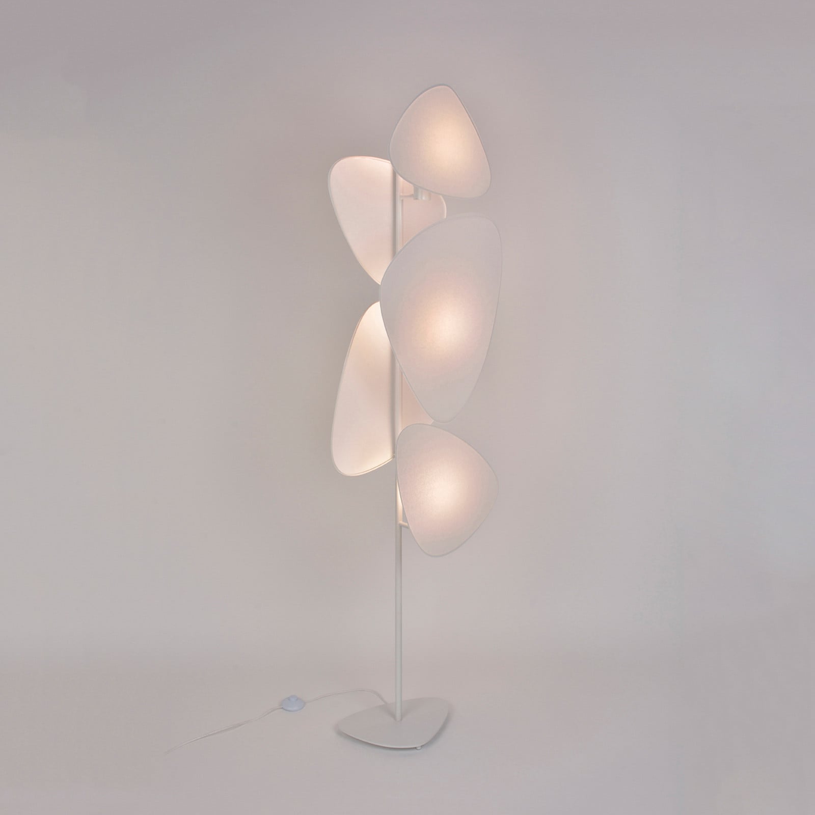 Lampadarul Screen de la MARKET SET, cu o înălțime de 179 cm, aduce un strop de eleganță și liniște în orice cameră de zi sau sufragerie. Designul său minimalist, cu un cadru metalic alb și cinci panouri din hârtie Muranopapier, în formă de triunghiuri rotunjite, face ca acest lampadar să fie o piesă statement. Între panouri, pot fi inserate trei becuri E27, care emit o lumină caldă și armonioasă, difuzată delicat prin hârtie. Această combinație de materiale și forme transformă fiecare spațiu într-un refugiu de relaxare.