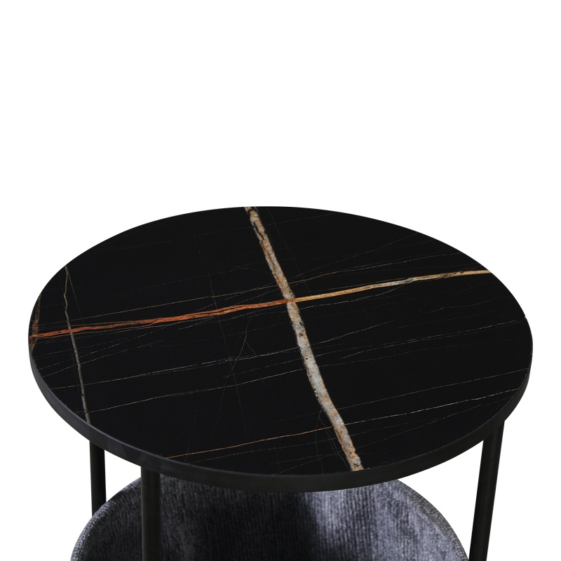 Măsuța laterală Fredami Negru 40x40x50 cm îmbină eleganța cu utilitatea, având un design compact și modern. Blatul din MDF melaminat cu aspect de marmură neagră oferă o suprafață rezistentă, susținută de un cadru metalic de înaltă durabilitate. Compartimentul textil gri facilitează organizarea, fiind perfect pentru telecomenzi sau reviste. Produsul se livrează dezasamblat, cu un ghid de montaj detaliat inclus. Întreținerea se face ușor, curățând suprafețele cu o cârpă moale. Completează-ți livingul cu această piesă practică și elegantă!