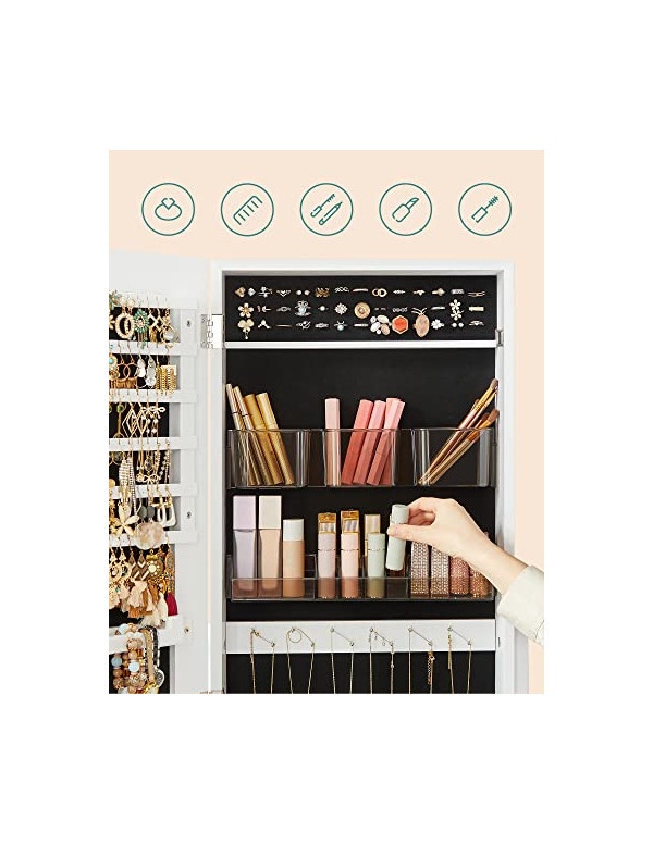 Dulap pentru depozitare bijuterii si oglinda Songmics UJJC002W01 Plastic