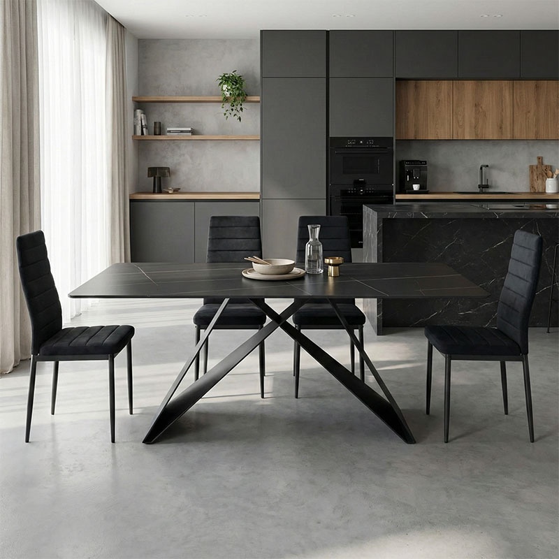 Masa Mapele - Eleganță și Funcționalitate Design și materiale de calitate Masa Mapele se remarcă printr-un design modern și o finisare elegantă cu aspect de marmură albă, completată de o structură din metal negru. Suprafața din piatră sinterizată de 10mm este extrem de rezistentă la zgârieturi, căldură, umiditate și pete, asigurându-vă un produs de calitate superioară. Această masă nu este doar un element decorativ, ci și un piesa de rezistență în orice living. Funcționalitate și organizare Cu dimensiunile sale de 180x90x75 cm, masa Mapele este ideală pentru cine cu prietenii sau întâlniri de familie . Designul său geometric modern nu doar că adaugă un caracter distinct , dar oferă și o stabilitate excelentă , fiind perfectă pentru orice ocazie, de la mese zilnice la cine formale. Montaj și întreținere Produsul se livrează în stare neasamblată și include un ghid detaliat de asamblare . Întreținerea este simplă, putând fi curățată cu o lavetă moale pentru a-i păstra aspectul impecabil. Masa nu necesită un kit anti-răsturnare, dar este construită pentru a oferi siguranță și stabilitate. Comandă acum și transformă-ți spațiul! Nu rata ocazia de a adăuga un strop de lux și stil în casa ta. Comandă masa Mapele și bucură-te de momente de neuitat alături de cei dragi! Detalii tehnice complete Dimensiuni și greutate Dimensiuni produs: 180 x 90 x 75 cm Greutate produs: 69.5 kg Materiale și caracteristici Material corp: Piatra sinterizată / Metal Culoare: Negru Număr pachete: 3 Montaj și pachet Stare asamblare: Neasamblat Conținut pachet: 1 x Masă, Accesorii de montaj, Instrucțiuni Manual de asamblare: Descarcă aici Stil și origine Stil: Modern Destinație recomandată: Living