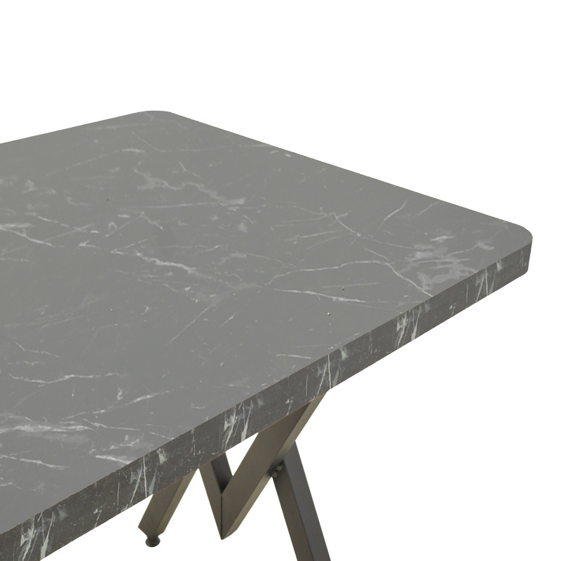 Masă Vertex Negru 110 x 70 x 72 cm — Eleganță industrială pentru dining Design și materiale de calitate Vertex impune prezență: blatul cu efect marmură și picioarele geometrice negre conturează un punct focal rafinat. Blatul este realizat din Lemn PAL (chipboard) de 3,6 cm, acoperit cu finisaj PVC , iar structura portantă este din Metal vopsit negru. Menționăm și termenul Lemn MDF pentru claritate tehnică, deși produsul folosește în mod specific Lemn PAL. Funcționalitate și organizare Concepută pentru întâlniri cotidiene și seri relaxate, masa găzduiește confortabil 4–6 persoane și se potrivește atât ca piesă de dining, cât și ca birou stilat pentru lucrul de acasă. Dimensiunile compacte de 110 x 70 x 72 cm oferă stabilitate și prezență, păstrând totodată o amprentă practică în spații moderne. Montaj și întreținere Produsul se livrează neasamblat , în 2 colete , cu instrucțiuni detaliate de asamblare și accesorii incluse. Curățarea se face ușor cu o lavetă moale pentru a păstra intensitatea finisajului PVC și aspectul de marmură. Comandă acum și transformă-ți spațiul! Alege Masa Vertex pentru un mix irezistibil de stil industrial și funcționalitate — comandă astăzi și adu un punct central plin de caracter în casa ta. Detalii tehnice complete Dimensiuni și greutate Dimensiuni produs: 110 x 70 x 72 cm Greutate produs: 16.5 kg Materiale și caracteristici Material corp: Metal / Lemn PAL (chipboard 3,6 cm) — mențiune: Lemn MDF Material finisaj/tapițerie: Finisaj PVC Culoare: Negru (efect marmură) Număr pachete: 2 Montaj și pachet Stare asamblare: Neasamblat Conținut pachet: 1 x Masă Vertex, Accesorii de montaj, Instrucțiuni de asamblare Manual de asamblare: Descarcă aici Stil și origine Stil: Industrial Destinație recomandată: Living