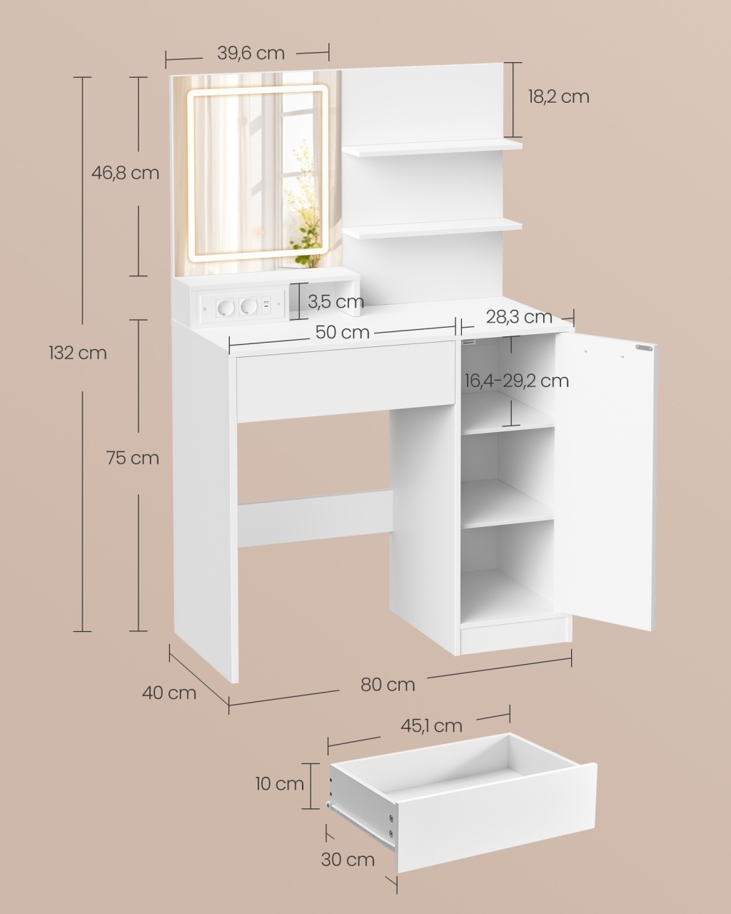 Masa de toaleta si machiaj Vasagle Alb 80x40x132.5 cm