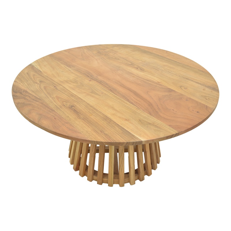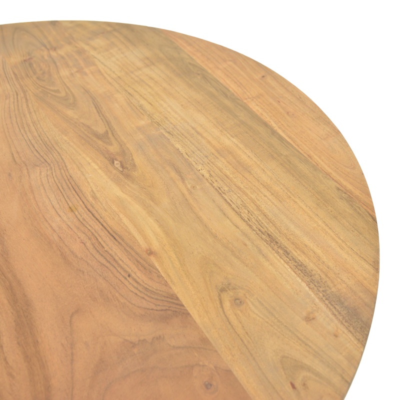 Măsuță de cafea Radiane — Eleganță naturală și căldură organică pentru living Design și materiale de calitate Radiane impresionează imediat cu suprafața rotundă din lemn masiv de acacia și baza conică compusă din fâșii verticale, care creează un joc spectaculos de lumină și umbră. Finisajul natural pune în valoare fibra și nuanțele calde ale lemnului, oferind o atmosferă primitoare , caldă și sofisticată . Produsul este realizat din lemn masiv de acacia; nu conține Lemn PAL sau Lemn MDF , mențiune utilă pentru cei care urmăresc compoziția materialelor. Funcționalitate și organizare Cu diametrul de 80 cm și înălțimea de 40 cm, această măsuță devine centrul livingului, ideală pentru cești de cafea, obiecte de decor și momente de relaxare. Baza robustă asigură stabilitate și durabilitate , iar designul aerisit adaugă profunzime vizuală spațiului. Dimensiunile compacte o fac potrivită atât pentru sufragerii generoase, cât și pentru colțuri mai intime. Montaj și întreținere Produsul se livrează neasamblat, cu instrucțiuni clare și accesorii pentru montaj; asamblarea este simplă și atent descrisă în ghid. Pentru întreținere, curățați suprafața cu o lavetă moale ușor umedă și folosiți periodic produse de protecție pentru lemn pentru a păstra strălucirea și structura naturală a acaciei. Nu sunt incluse sisteme anti-răsturnare. Comandă acum și transformă-ți spațiul! Adaugă în living o piesă statement care îmbină naturalețea lemnului cu un design arhitectural — comandă măsuța Radiane și lasă căldura și textura acaciei să redefinească fiecare moment petrecut acasă. Detalii tehnice complete Dimensiuni și greutate Dimensiuni produs: 80 x 80 x 40 cm Greutate produs: 34.5 kg Materiale și caracteristici Material corp: Lemn masiv de acacia (nu conține Lemn PAL sau Lemn MDF) Material finisaj/tapițerie: Finisaj natural Culoare: Natural Număr pachete: 2 Montaj și pachet Stare asamblare: Neasamblat Conținut pachet: 1 x Măsuță de cafea Radiane, Accesorii de montaj, Instrucțiuni Stil și origine Stil: Modern Destinație recomandată: Living