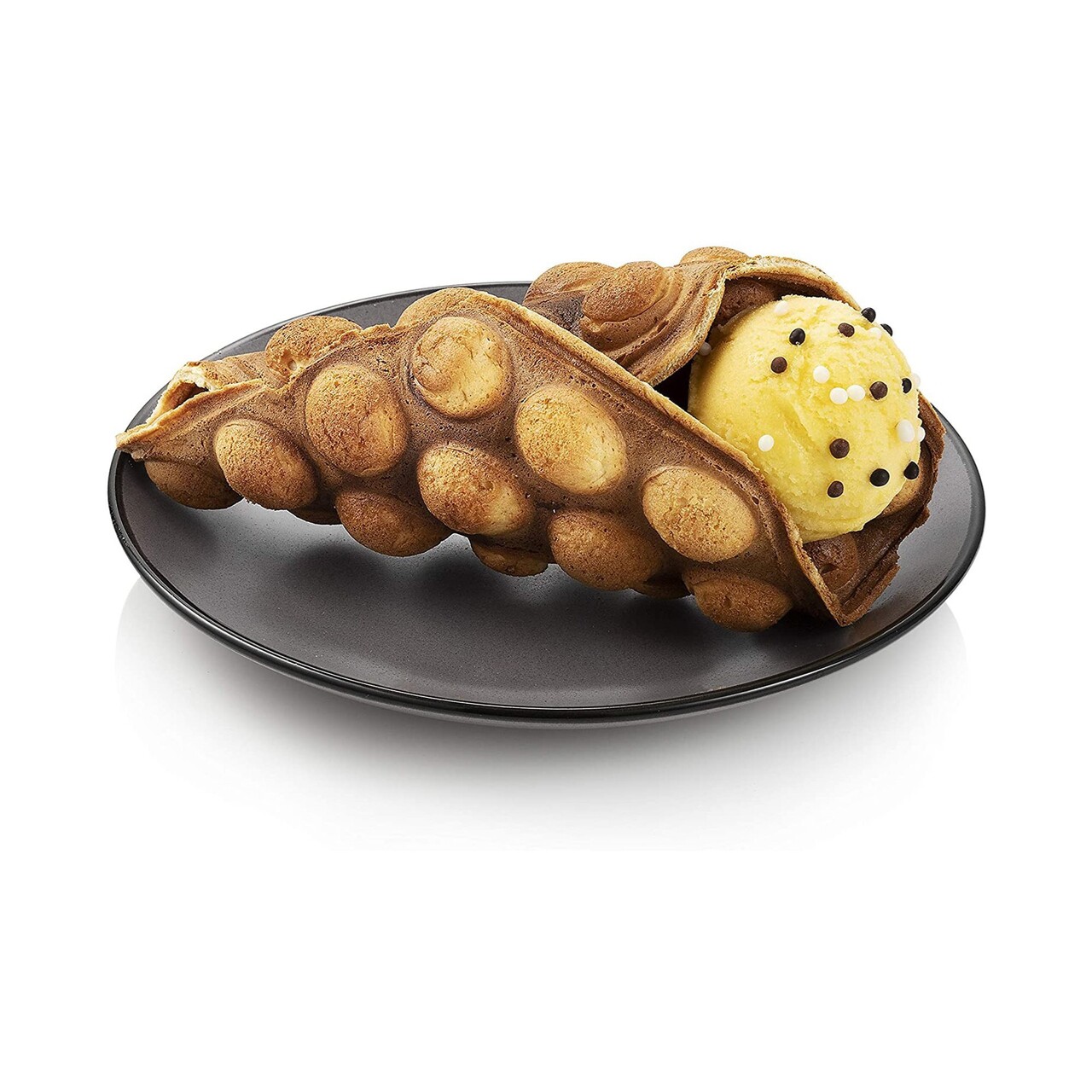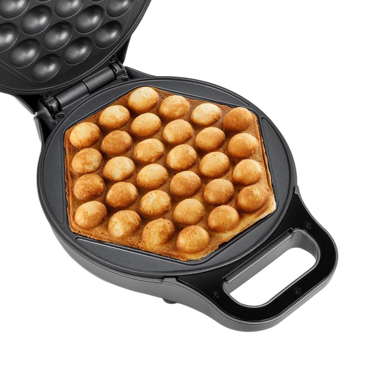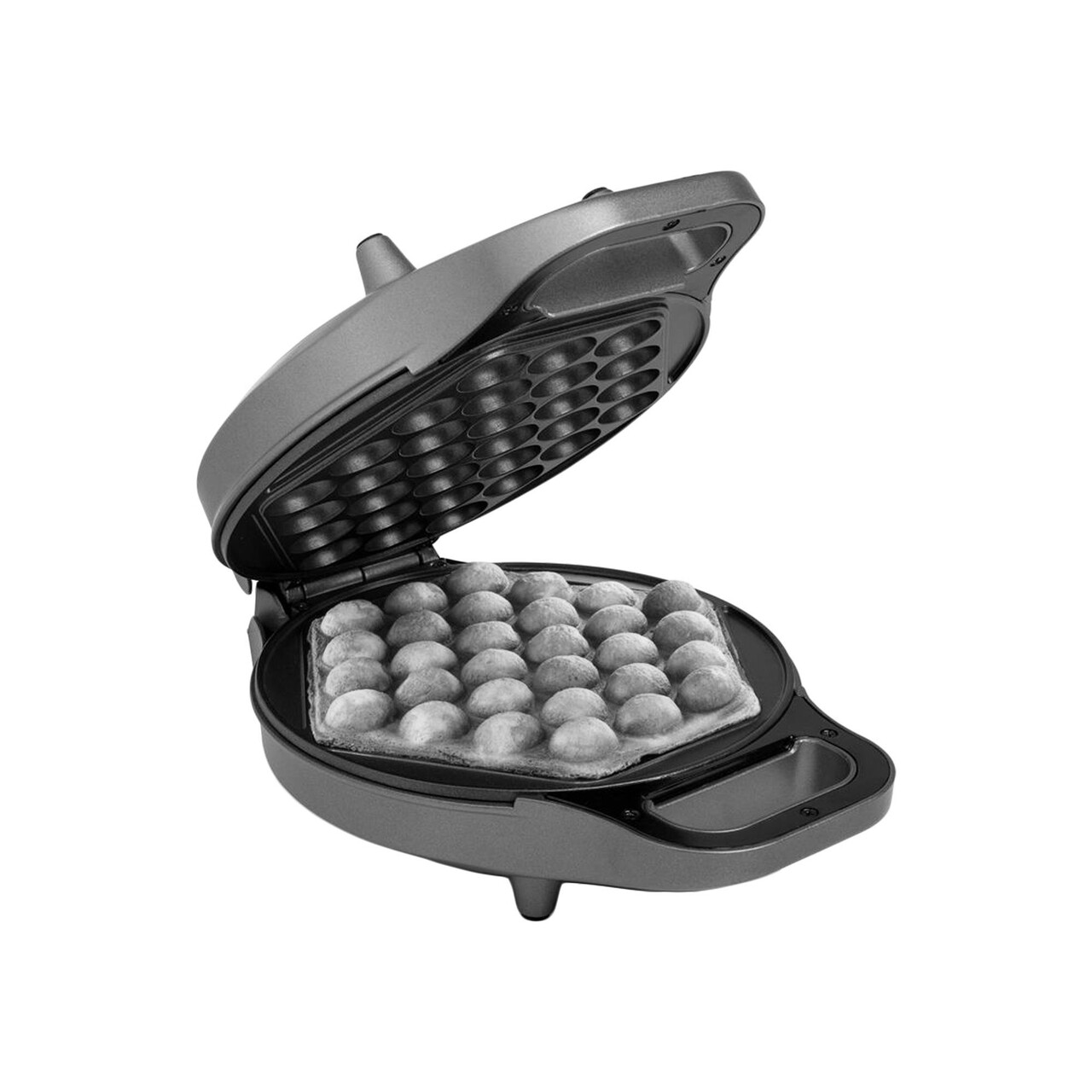 Preparati ceva original si gustos in doar cateva minute! Acum puteti face gofre delicioase cu bule cu aparatul de gofre Princess.Datorita designului inovator, Vafa iese in forma tipica hexagonala avand o structura cu bule.Dupa care puteti alege toppingul preferat, Cum ar fi fructe, Ciocolata, Inghetata, Caramel sau chiar somon si crema de branza si sa serviti un preparat unic.Gata in doar 5 minuteMultumita aparatului Princess Bubble puteti coace gofre cu bule in maximum 5 minute.Umpleti aparatul cu aluatul de gofre si intoarceti aparatul.Acest lucru va asigura ca aluatul se intinde pe toata suprafata si, Prin urmare, Obtineti acel rezultat aerisit.Vafa este gata dupa 3-5 minute, Cu o crusta maro-aurie la exterior si moale la interior.Aparatul de gofre cu bule are un strat antiaderent, Astfel incat gofrele nu vor arde niciodata si le puteti indeparta cu usurinta din aparat.In plus, Controlul automat al temperaturii nu va permite ca aparatul sa se incalzeasca prea tare.Gofre delicioase cu un aparat modernRulati gofrele calde in forma de con de inghetata si puteti pune cu usurinta inghetata impreuna cu alte toppinguri.Gofrele sunt delicioase cu umplutura atat dulce, Cat si sarata.Ideal pentru o petrecere pentru copii sau daca doriti sa va surprindeti prietenii cu o gustare creativa.Sigur de utilizatDatorita carcasei rezistente si a picioarelor antiderapante, Aparatul cu bule este foarte robust si sigur.Mai mult, Datorita manerului cool-touch si a imbinarii invizibile, Dispozitivul este potrivit pentru a fi utilizat impreuna cu copiii dvs.Aparatul este compact si este usor de depozitat fie in camara, Fie in bucatarie.Sfaturi utileAcest preparat este originar din Asia si a devenit cunoscut in SUA si Europa.Pentru a crea mancaruri de strada din Asia, Amestecati putina pulbere de matcha in aluat.Aceasta ofera un gust proaspat si adauga o culoare verde speciala, Aspectuoasa.Ce contine cutiaAparat pentru gofre cu bule Princess, ManualMotive pentru alegerea aparatului de gofre Princess Bubble: Pregatesti acasa in mai putin de 5 minute gofre cu bule. Intotdeauna crocant la exterior si aerisit la interior datorita stratului antiaderent robust. De asemenea, Faceti gofre in siguranta cu copiii dvs., Deoarece aparatul are picioare antiderapante si control al temperaturii. Serviti gofrele cu bule alaturi de toppinguri preferate dulci sau sarate, Cum ar fi fructe, Inghetata si ciocolata. Usor de curatat cu o laveta umeda. SPECIFICATII TEHNICE Putere(W) 700 Tensiune(V) 220-240 Frecventa(Hz) 50/60 Tip de alimentare Electrica Bucati preparate/sesiune 1 Placi detasabile Nu Potrivit pentru gofre cu bule Indicator luminos pregatire Da Suprafata antiaderenta Da Dimensiune suprafata de gatit(Cm) 30 Temperatura maxima (°C) 190 Picioruse antialunecare Da Functie de rotatie Da Tip stecher F - CEE 7/4(Schuko) Lungime cablu(Cm) 70 Stocare cablu Nu Material principal carcasa Aluminiu Culoare Gri inchis Garantie 2 ani