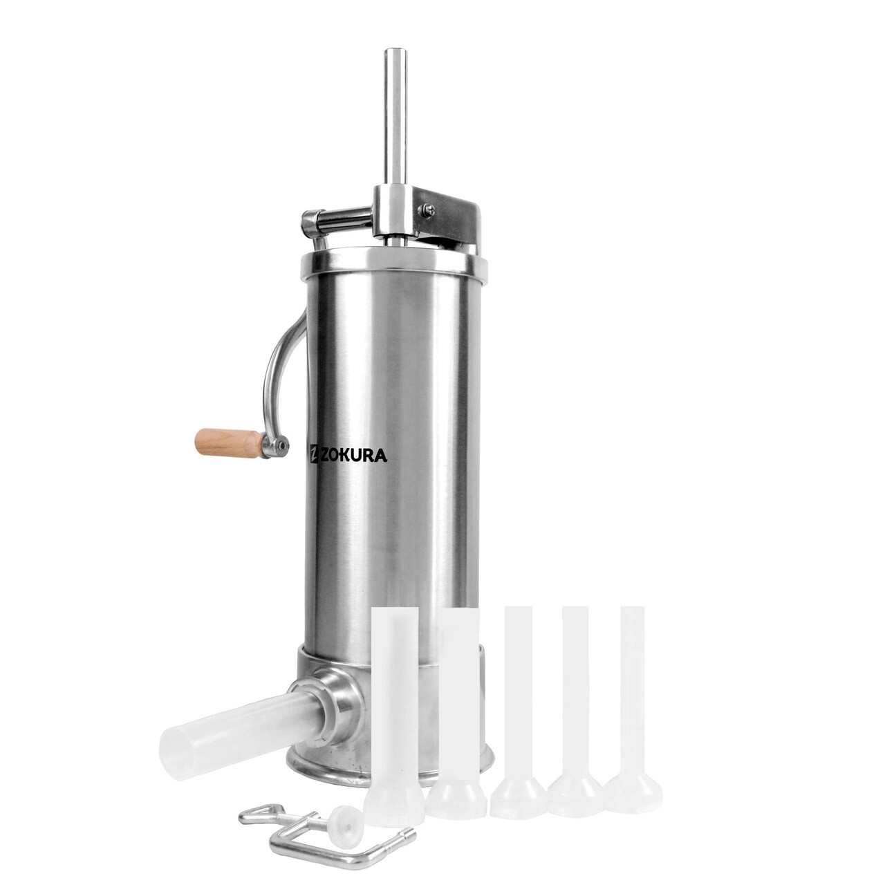 Fiecare bucatarie, Cu reteta sa de carnati!Suculenti, Aromati, Cruzi, Uscati sau afumati, Carnatii de casa sunt piesa de rezistenta la mesele copioase in familie, Asa ca cel mai bine ii pregatesti singur de la A la Z cuMasina de facut carnati, MarcaZokura.DinInox 18/10, Masina iti permite sa pregatesti simplu si rapid o cantitate mare de carnati la o folosire, Recipientul sau avand diametrul interior de14 cm, O inaltime de40 cmSi capacitatea de5 kg.De asemenea, Poti varia tipurile de carnati, Alegand alternativ intre cele5 palnii de umplere, Cu diametrele diferite: 1,20 cm, 1,75 cm,2 cm, 2,5 cmSi3 cm, Ce te ajuta sa pregatesti atat carnati grosi, Precum si carnati subtiri pe care ii poti afuma si usca.Masina dispune de un brat deFixareCe o ataseaza de blatul de lucru facand-o sa fie extrem de stabila.De asemenea, Aceasta are in dotare unDisc de presareActionat de manerul masinii, Fiind gandit pentru a etansa recipientul si a apasa amestecul de carne intr-un mod compact.Curatare si intretinere:- Rotiti manivela in sensul opus acelor de ceasornic pentru a muta discul de presare in afara recipientului;- Dezasamblati toate partile mobile si palnia;- Spalati masina si componentele sale in apa calda cu detergent de vase;- Lasati-le la uscat si nu incercati sa le reasamblati decat atunci cand acestea sunt complet uscate.