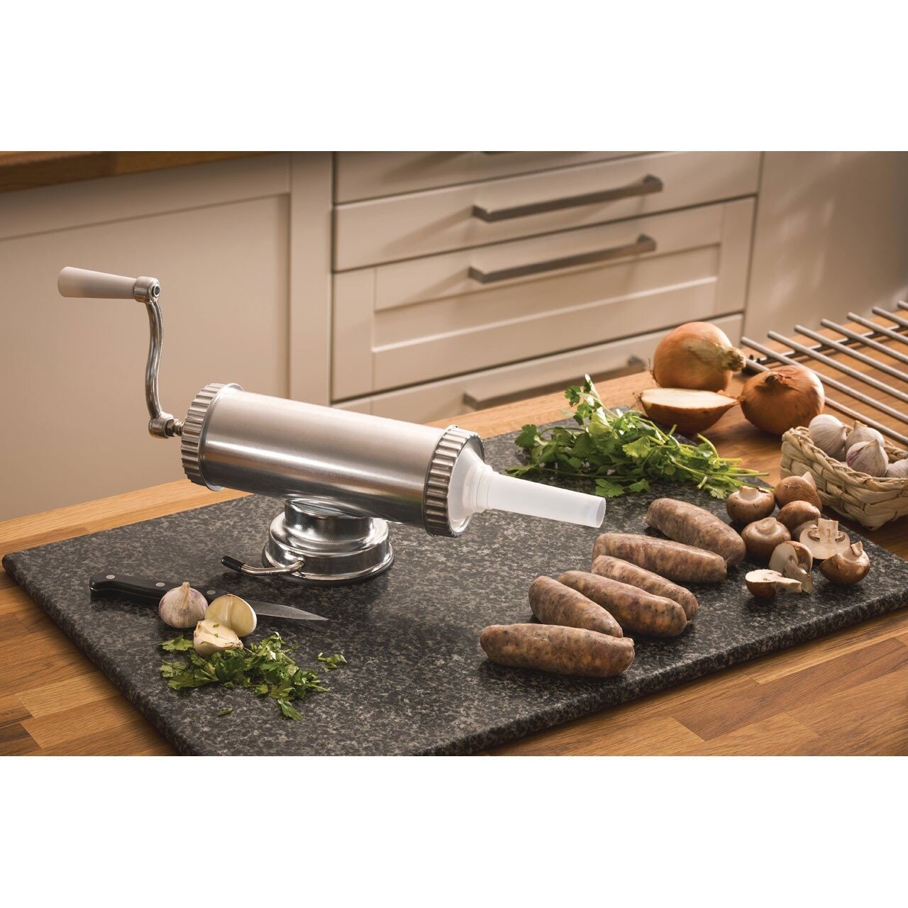 Fiecare bucatarie, Cu reteta sa de carnati!Suculenti, Aromati, Cruzi, Uscati sau afumati, Carnatii de casa sunt piesa de rezistenta la mesele copioase in familie, Asa ca cel mai bine ii pregatesti singur de la A la Z cuMasina de preparare carnati, Marca Zokura.Din aluminiu, Masina iti permite sa pregatesti simplu si rapid o cantitate mare de carnati la o folosire, Tubul sau avand capacitatea de2,5 kg.De asemenea, Poti varia tipurile de carnati, Alegand alternativ cele 3 tuburi cu diametre diferite: 15, 19 si 22 mm.