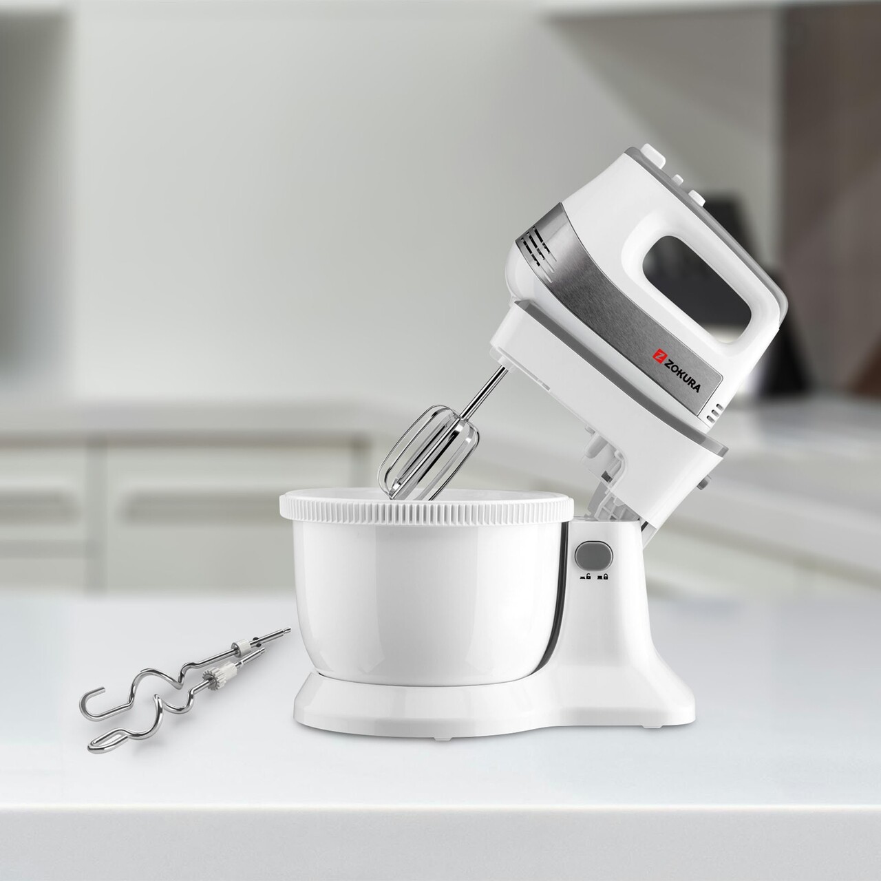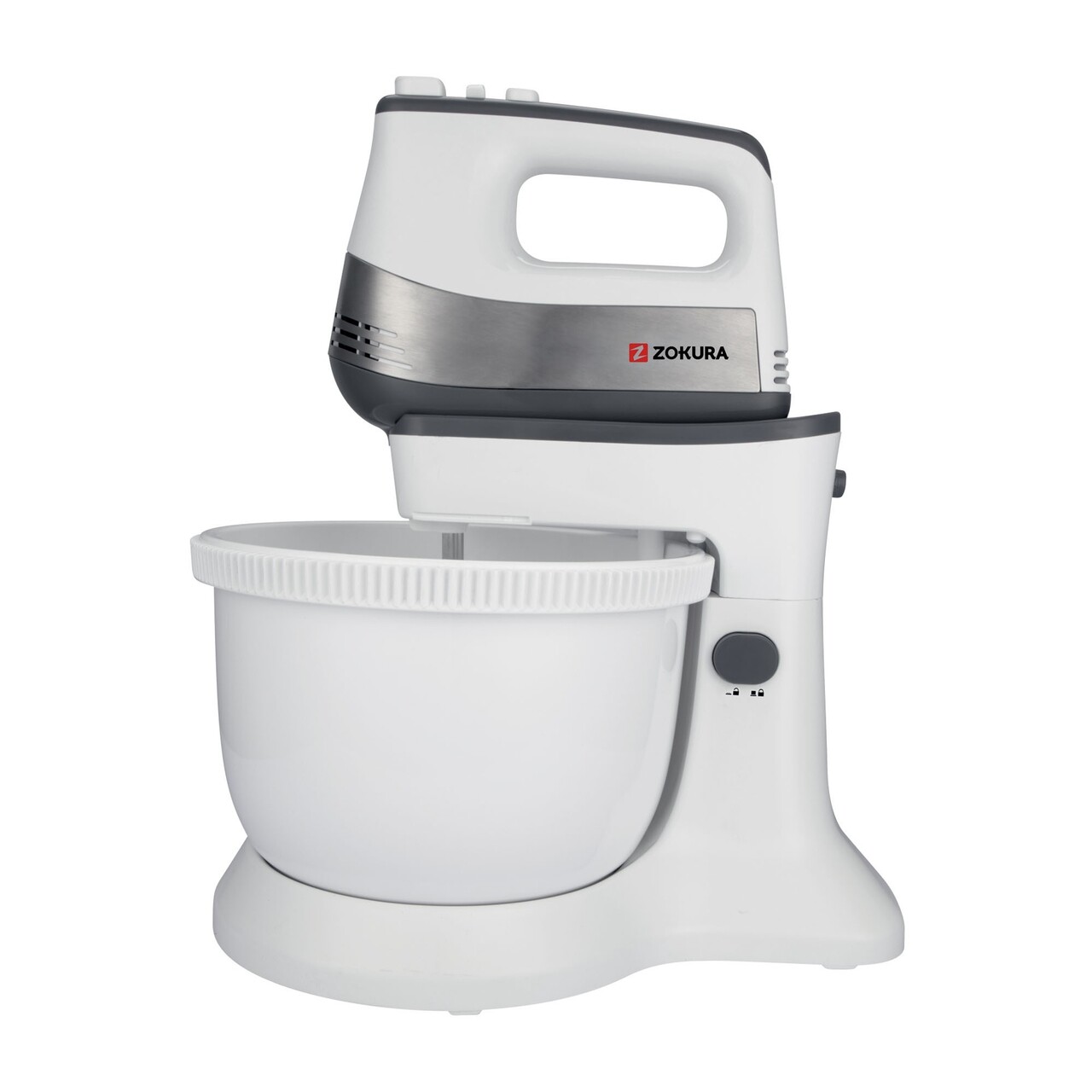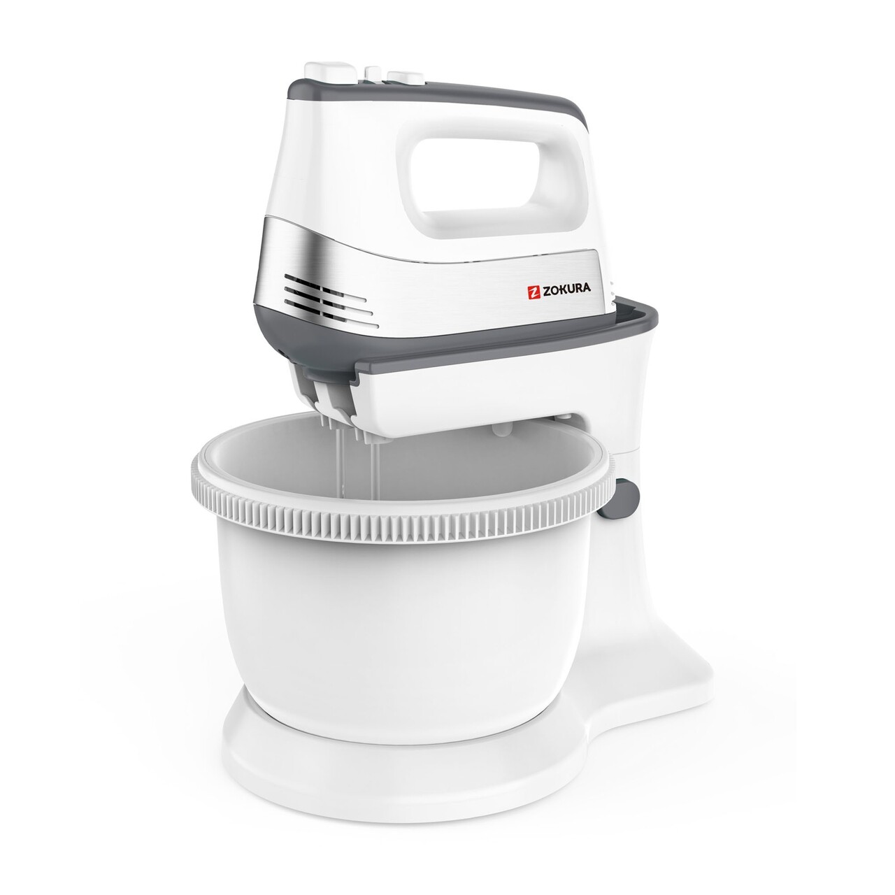 Mixerul de mana cu bol rotativ, MarcaZokura, Va ajuta sa preparati rapid si fara efort, Aluaturi si creme delicioase, Ca un bucatar profesionist.Cu o putere de500 W, Mixerul are5 trepteDe viteza si este dotat cu buton turbo.Ofera fexibilitatea si versatilitatea unui mixer de mana si avantajele unui mixer cu suport.Este dotat cu functieSlow StartCare asigura o incorporare lenta a ingredientelor, Prin cresterea treptata a vitezei, Prevenind astfel stropirea.Vitezele mici sunt potrivite pentru amestecarea ingredientelor moi, Cum ar fi piureurile, Untul sau a dressingurile, Iar vitezele medii sunt ideale pentru aluaturi de tort sau paine.Treapta 5 de viteza si treapta turbo, Sunt potrivite pentru a mixa oua, Frisca sau alte preparate care necesita baterea intensa.Caracteristici tehnicePutere: 500 W, 230V ~ 50Hz;5Trepte de viteza;Dotat cuButon turbo;FunctieSlow Start;Material carcasa: Plastic.Accesorii incluse- 1 bol rotativ pentru mixare, Din plastic;- 2 batatoare, Din inox;- 2 carlige pentru aluat, Din inox.