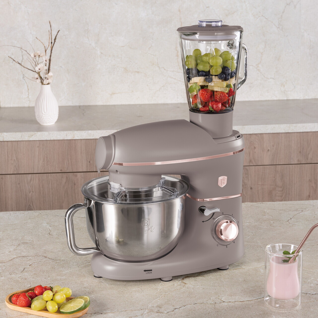 Robot de bucatarie 4 in 1 Berlinger Haus Taupe 1500W inox/plastic taupe mat/argintiu