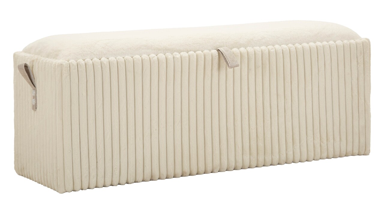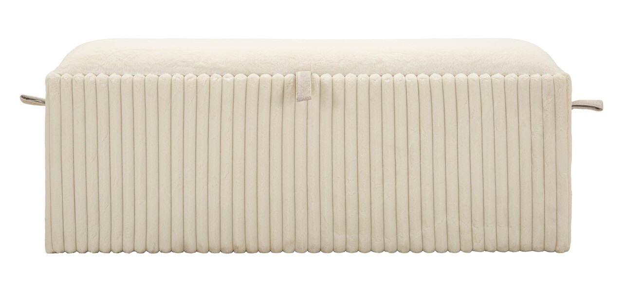 Liniile verticale delicate si tesatura plisata transforma aceasta banca intr-o piesa de mobilier eleganta si functionala. Practica datorita spatiului de depozitare si rafinata ca loc de sedere, aduce un aer scandinav incaperii.Compozitie material: MDF, burete, poliester.