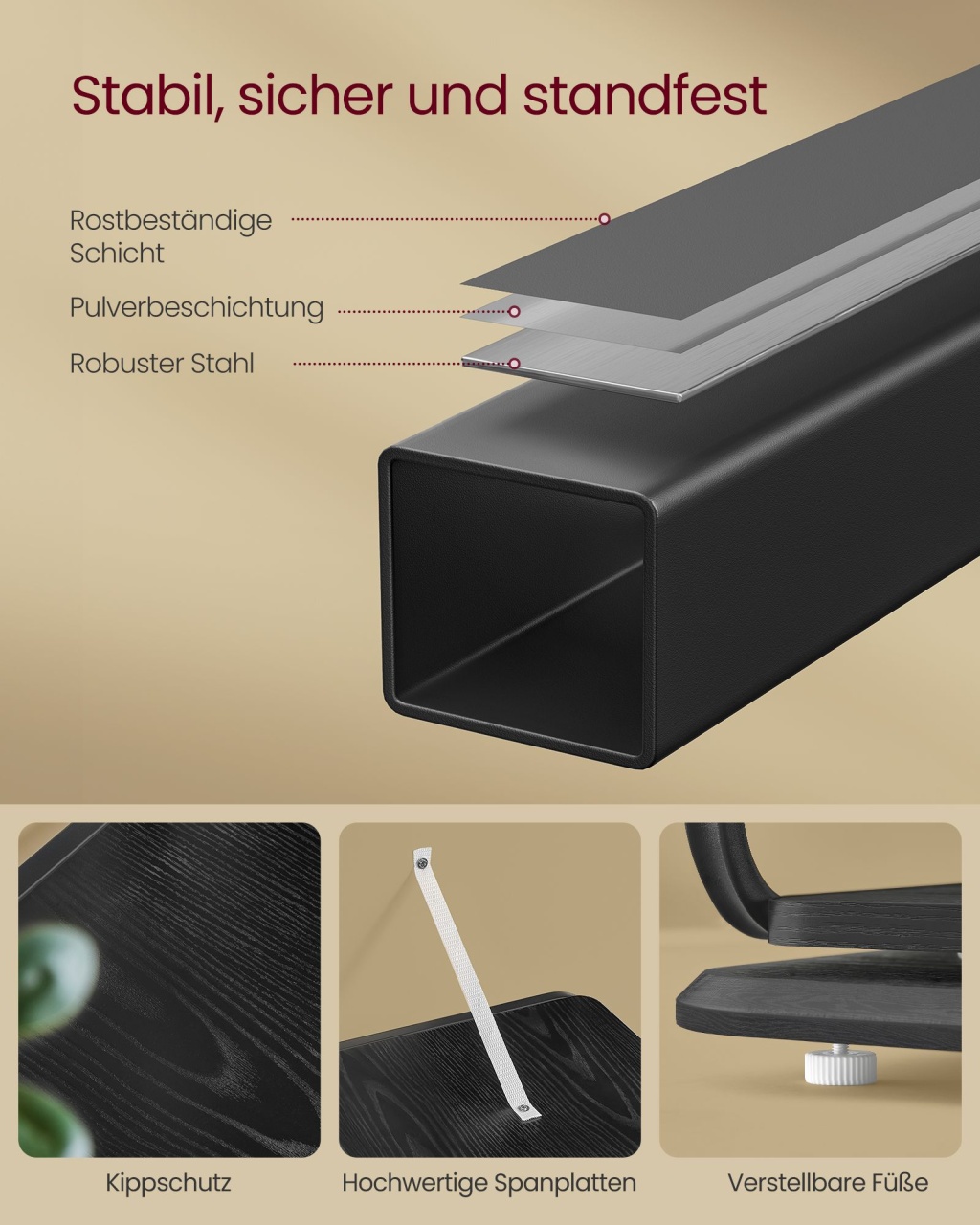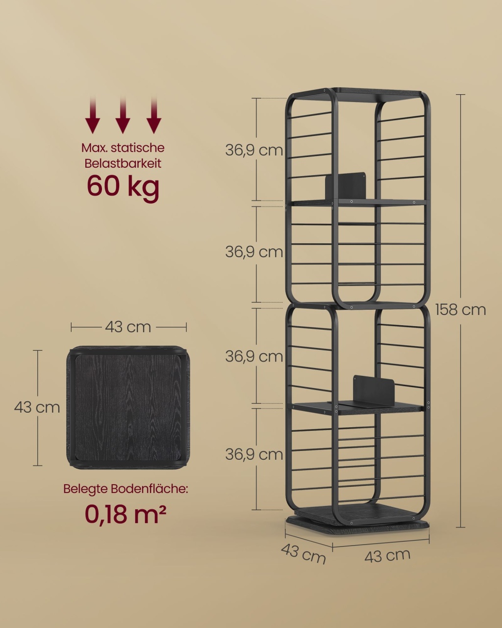 Biblioteca Vasagle 43 x 43 x 158 cm — Organizare rotativă pentru spații mici Design modern și materiale de calitate Construcția combină PAL robust cu un cadru din oțel finisat în nuanțe de negru elegant, astfel conferind un aer de rafinament și estetică contemporană oricărui colț din locuință. Forma compactă, proiectată special pentru a se integra discret în spații strânse, aduce o notă de ambianță premium, în timp ce texturile mate și liniile curate subliniază durabilitatea produsului. Datorită finisajelor atente, această bibliotecă devine atât un element funcțional, cât și un punct focal estetic în living, birou sau dormitor. Funcționalitate și organizare Designul rotativ inovator face ca volumul preferat să fie la doar o rotire distanță, iar grilele laterale de protecție păstrează obiectele în siguranță în timpul rotirii, astfel încât ordinea devine ușor de menținut. Cele patru rafturi spațioase pot susține aproximativ 80–100 de cărți , iar cele două tăblii despart fiecare nivel în secțiuni mai mici, oferind flexibilitate — pot fi îndepărtate pentru a crea spații mai mari sau folosite separat pentru organizare. Astfel, biblioteca optimizează spațiul, protejează colecțiile și organizează eficient rândurile de volume, conferind o versatilitate practică în orice cameră. Montaj și întreținere Asamblarea este simplă și intuitivă, beneficiind de pași clar etichetați și instrucțiuni ușor de urmărit, ceea ce transformă instalarea într-o operațiune rapidă și lipsită de stres. Pentru stabilitate, produsul are patru picioare reglabile care compensează ușoare denivelări și include un kit anti-răsturnare pentru fixare în perete, oferind un plus de siguranță și liniște. Curățarea se face ușor cu o cârpă moale, iar materialele — PAL și oțel — păstrează aspectul îngrijit în timp, garantând durabilitate și întreținere minimă. Comandă acum Alege acum o soluție elegantă și eficientă pentru organizarea cărților tale — adaugă Biblioteca Vasagle în coș și transformă orice colț într-un spațiu ordonat și rafinat. Detalii tehnice complete Dimensiuni și greutate Dimensiuni produs: 43 x 43 x 158 cm Greutate produs: 20 kg Capacitate maximă: 60 kg Materiale și caracteristici Material corp: PAL și oțel Culoare: Negru (nuanțe Ebony/Ink Black) Montaj și pachet Stare asamblare: Neasamblat Conținut pachet: 1 x Bibliotecă, Accesorii de montaj, Kit anti-răsturnare, Instrucțiuni Stil și origine Stil: Modern Destinație recomandată: Living, Birou de acasă, Dormitor Informații importante Produsul este prevăzut cu un kit anti-răsturnare pentru fixare în perete și grile laterale care împiedică căderea obiectelor în timpul rotirii; vă recomandăm să utilizați aceste elemente pentru siguranța optimă. Nu depășiți capacitatea maximă totală de 60 kg și asigurați-vă că raftul este poziționat pe o suprafață stabilă; reglați picioarele dacă este necesar pentru a elimina balansul. Pentru siguranța copiilor, evitați lăsarea nesupravegheată a acestora în apropierea mobilierului și nu folosiți bibliotecă drept scară.