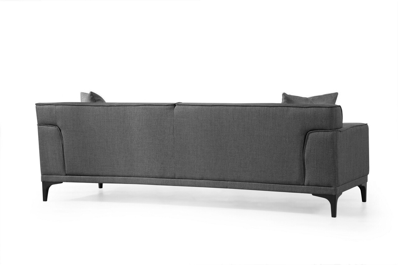 Canapea 3 locuriTesatura: PoliesterMarime: Latime: 215 cm Inaltime: 87 cm Adancime: 86 cmLățimea brațului: 22 cmAdancime sezut: 60 cmInaltime sezut: 45 cm8 cm 28 DNS Spumă Gri + 5 cm 24 DNS Feather Pentru Așezat24 DNS Spumă + Pene pentru Spate2 perne incluse60% spumă tăiată / 40% spumă de siliconPernă fixă pentru șezut și spateTesatura care se curata uscatPicioare: Picioare negre din plastic dur