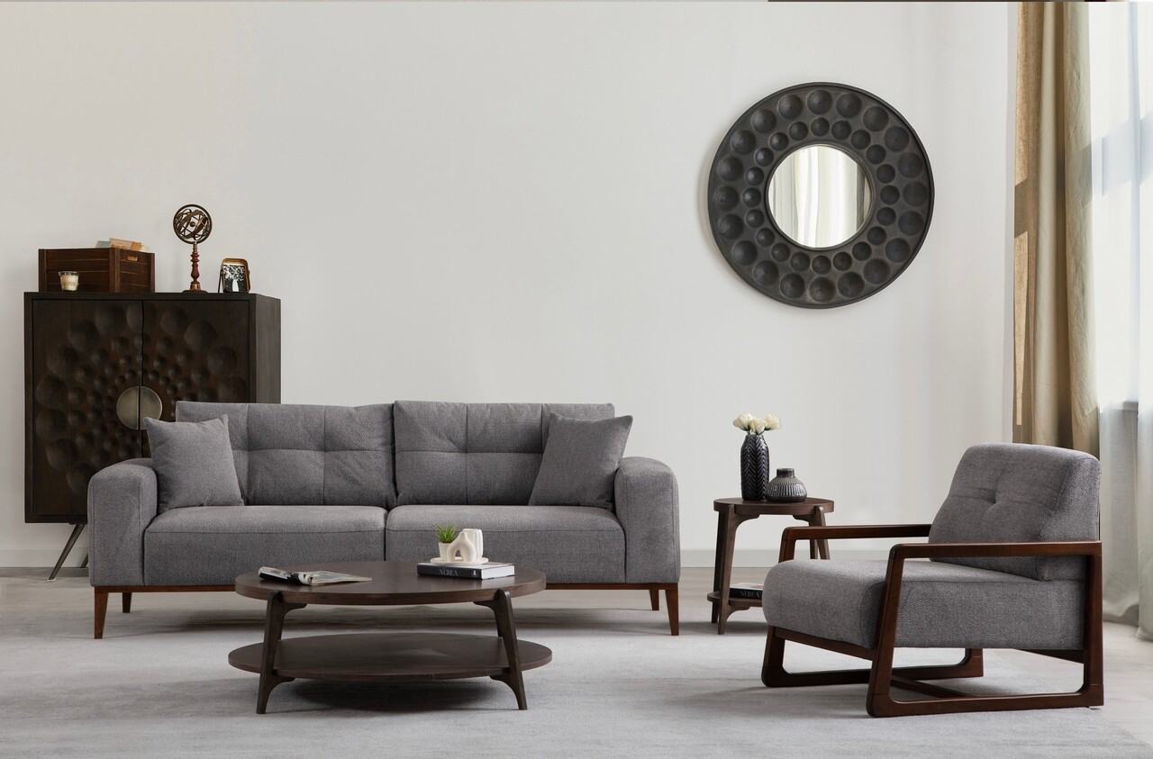 Canapea extensibila 3 locuriTesatura: PoliesterLungime: 225 cm Latime: 92 cm Inaltime: 75 cmInaltime sezut: 45 cmAdancime sezut: 57 cmInaltimea piciorului: 20 cmSpuma: 28 DNS spumă moale gri / 24 DSpuma: 28 DNS spumă moale gri / 24 DNS Feather60% spumă tăiată / 40% spumă de silicon pentru spateMecanism: Mecanism de spătar rotativ pentru canapea extensibilăPernă fixă pentru șezut / Pernă portabilă pentru spateTesatura care se curata uscatPicioare: Bază și picioare din lemn negru
