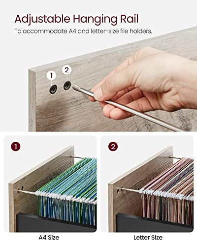 Optiuni multiple de depozitare: O suprafata superioara pentru o planta, un raft deschis pentru agrafe si capsatoare, un sertar superior pentru caiete de notite si un sertar inferior adanc pentru dosare - acest dulap de dosare se potriveste nevoilor dvs. variate de depozitare pentru a va pastra organizate elementele esentiale de birou. Sertar practic pentru dosare: Una dintre sinele de agatat din sertarul de jos este reglabila pentru a gazdui suporturi de dosare de dimensiuni A4 sau Letter, mentinand dosarele in ordine si usor accesibile. Robust si durabil: Realizat cu un cadru robust din otel si Lemn PAL de calitate superioara, acest dulap de arhivare este suficient de solid pentru a sustine pana la 50 kg, insotind viata dvs. de lucru si de studiu an de an Roti pivotante de 360°, blocabile: Acest dulap mobil pentru dosare este prevazut cu patru roti pivotante de 360°, care va permit sa il deplasati oriunde doriti. Chiar mai bine, cele 2 roti din fata cu frane blocheaza dulapul pe loc, daca este necesar Usor de asamblat: Piesele clar etichetate si instructiunile ilustrate fac ca montarea acestui dulap de arhivare de 44 x 42 x 66,5 cm sa fie foarte usoara. Puteti incepe sa va organizati camera de studiu cat mai curand posibil!
