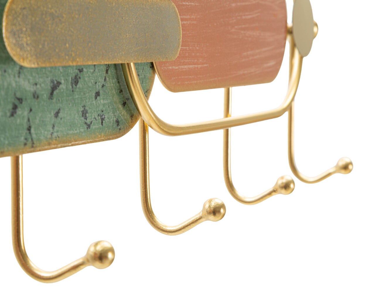 Cuier cu design geometric si rafinat, inspirat din arta moderna. Nuantele de verde si cupru se imbina armonios, ideale pentru holuri sau incaperi cu gust elegant.