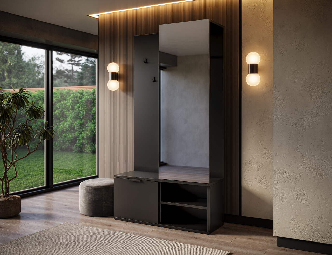 Dulap cu pantofar cuier si oglinda ELTAP Oturra 100x35x189 cm PAL negru