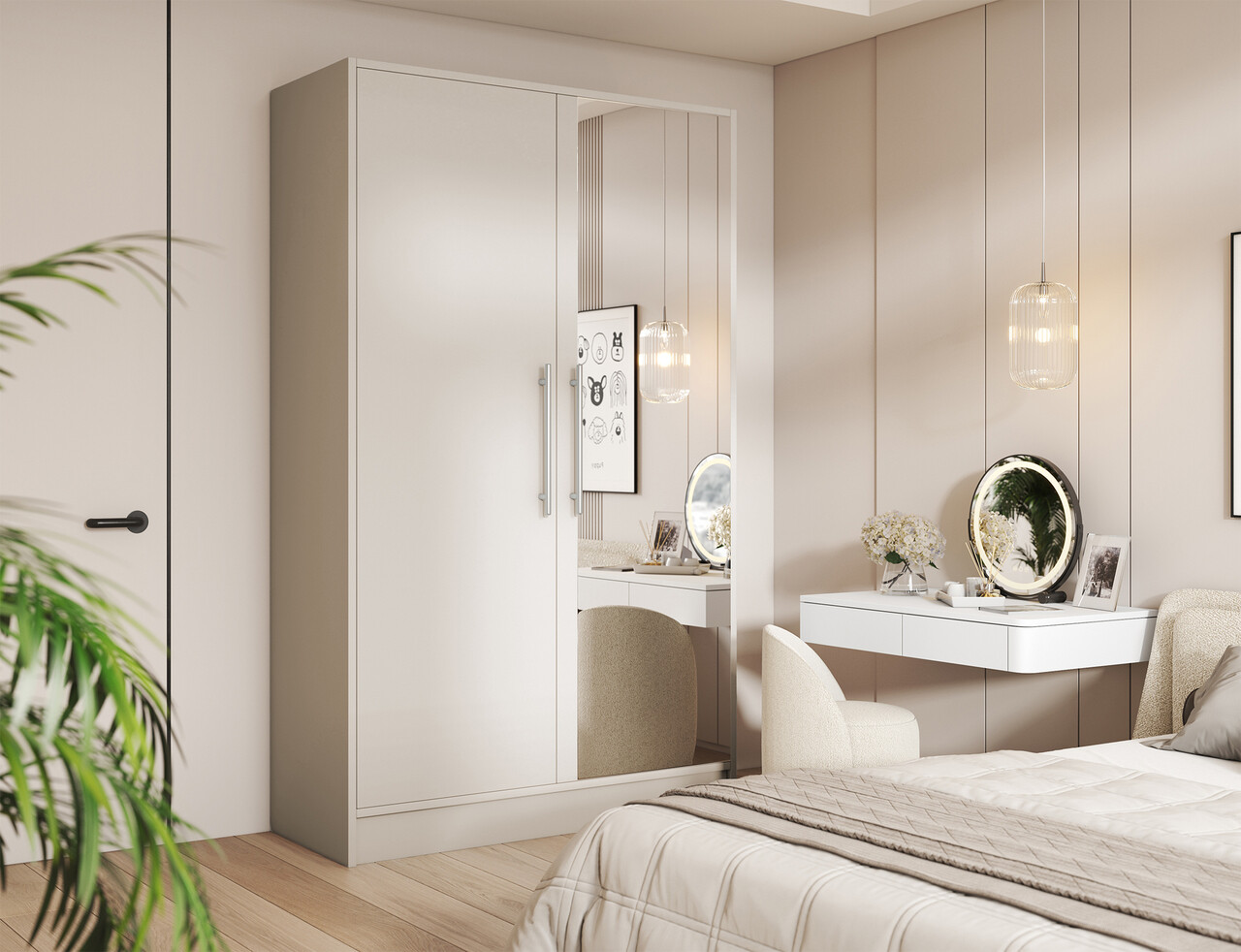 Dulapul Alarica este un dulap de haine spatios si solid, conceput pentru depozitarea confortabila a imbracamintei si accesoriilor in locuinte de diferite dimensiuni. Datorita dimensiunilor de 120 cm lungime, 200 cm inaltime si 60 cm adancime, ofera un spatiu generos de depozitare, pastrand totodata proportii care permit amplasarea usoara in majoritatea amenajarilor interioare. Carcasa si frontul sunt realizate din placa laminata durabila, ceea ce asigura rezistenta la utilizarea zilnica, intretinere usoara si un aspect estetic de durata. Interiorul dulapului este dotat cu 4 rafturi practice de 57x37x51 cm, fiecare avand o capacitate maxima de incarcare de pana la 8 kg, ideale pentru haine pliate, textile de casa sau organizatoare. Ansamblul este completat de 2 bare pentru umerase care permit agatarea comoda a camasilor, rochiilor, paltoanelor si altor articole vestimentare fara a se sifona. Un avantaj suplimentar este oglinda amplasata pe front care mareste optic spatiul si faciliteaza pregatirile zilnice. Dulapul Alarica este o alegere excelenta pentru cei care cauta un dulap functional, modern si rezistent, cu rafturi, bare si oglinda, pentru o organizare eficienta a hainelor.Produsul necesita asamblare.