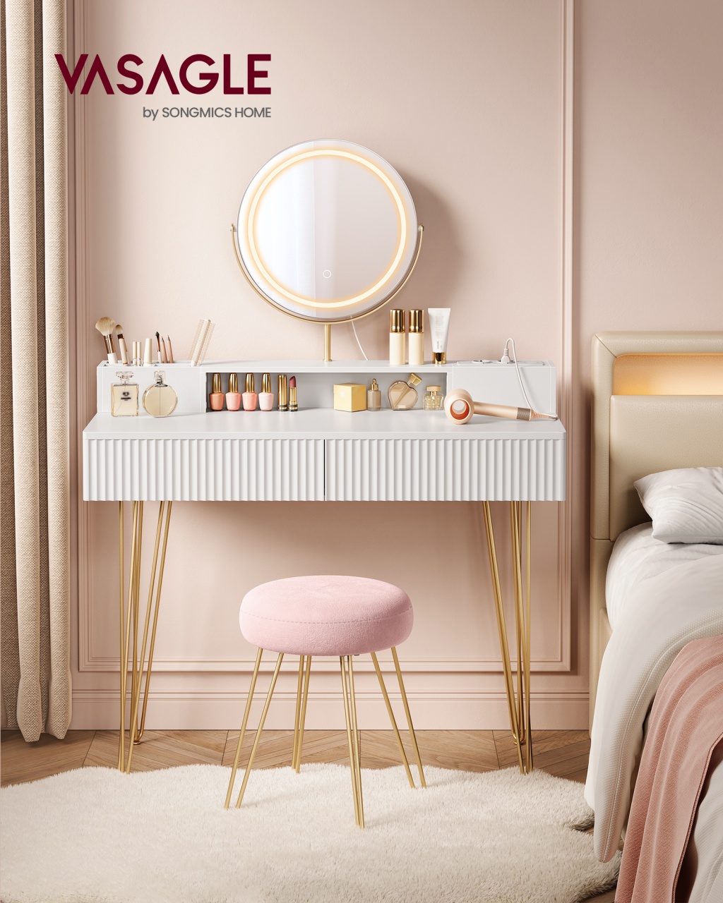 Masa de toaleta si machiaj Alb Vasagle 100x40x134.6 cm